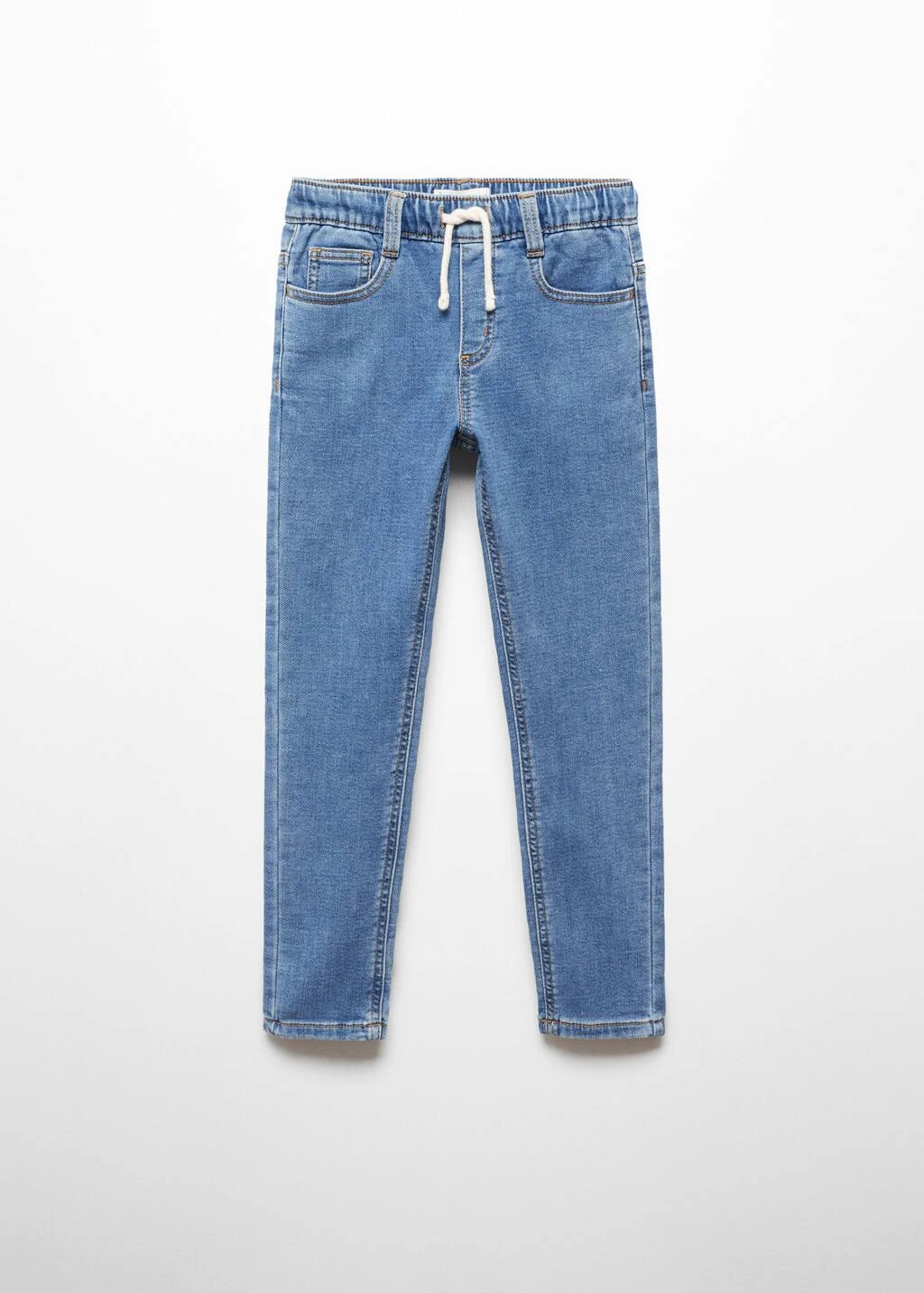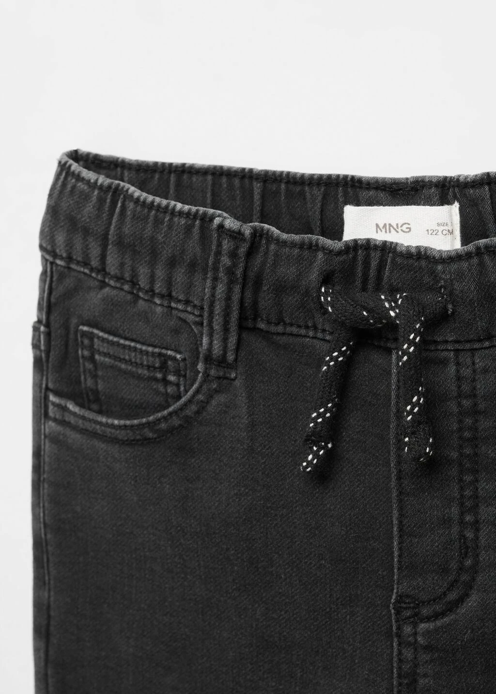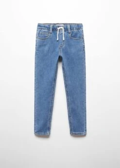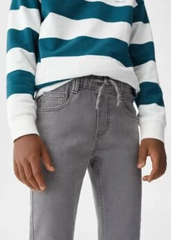 tissu en coton de style jean, comfy-fit, coupe longue, taille normale, taille elastique ajustable, fermeture a cordon, cinq pochesComposition: 77% coton,21% polyester,1% elasthanne,1% viscose
