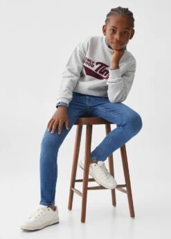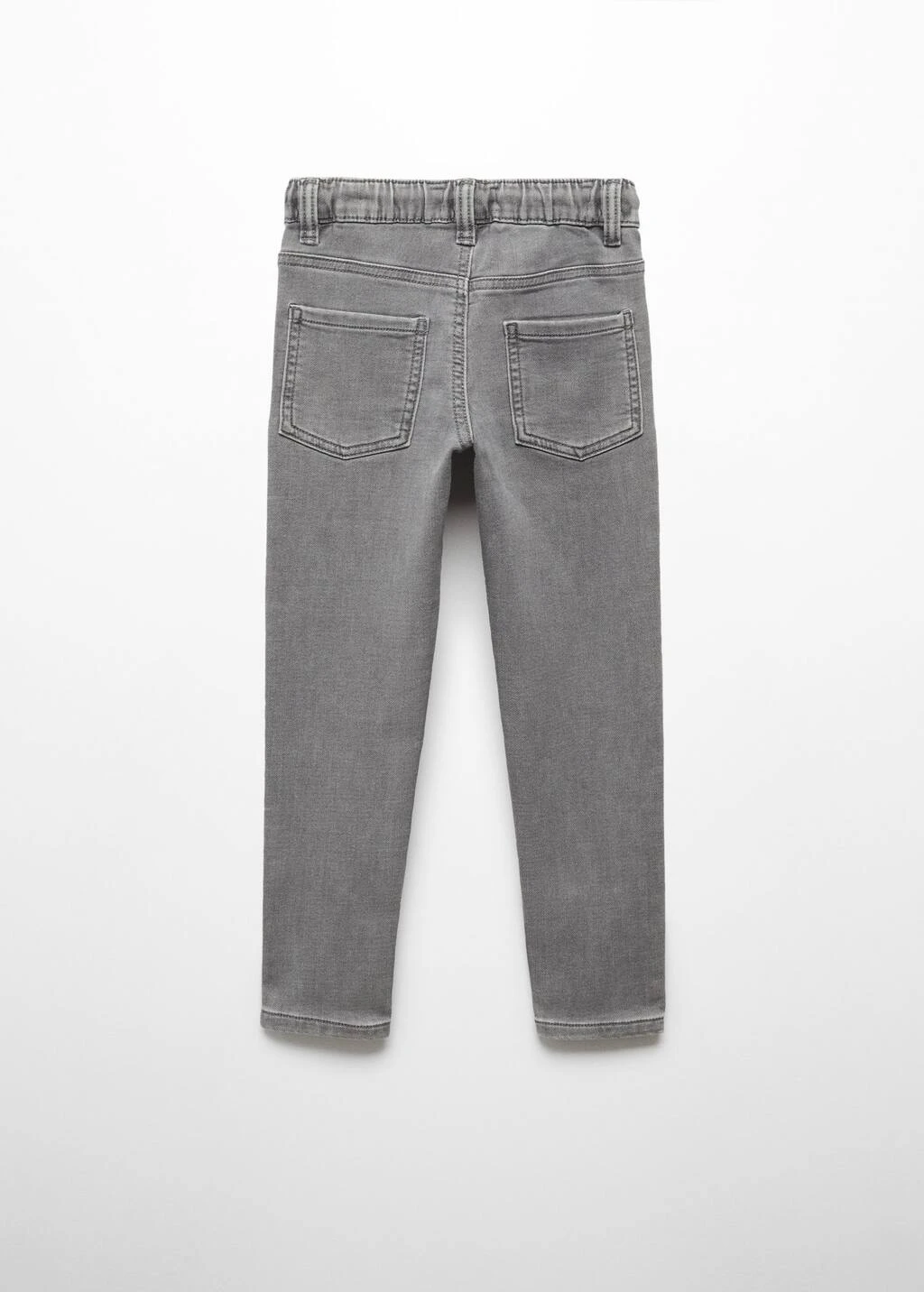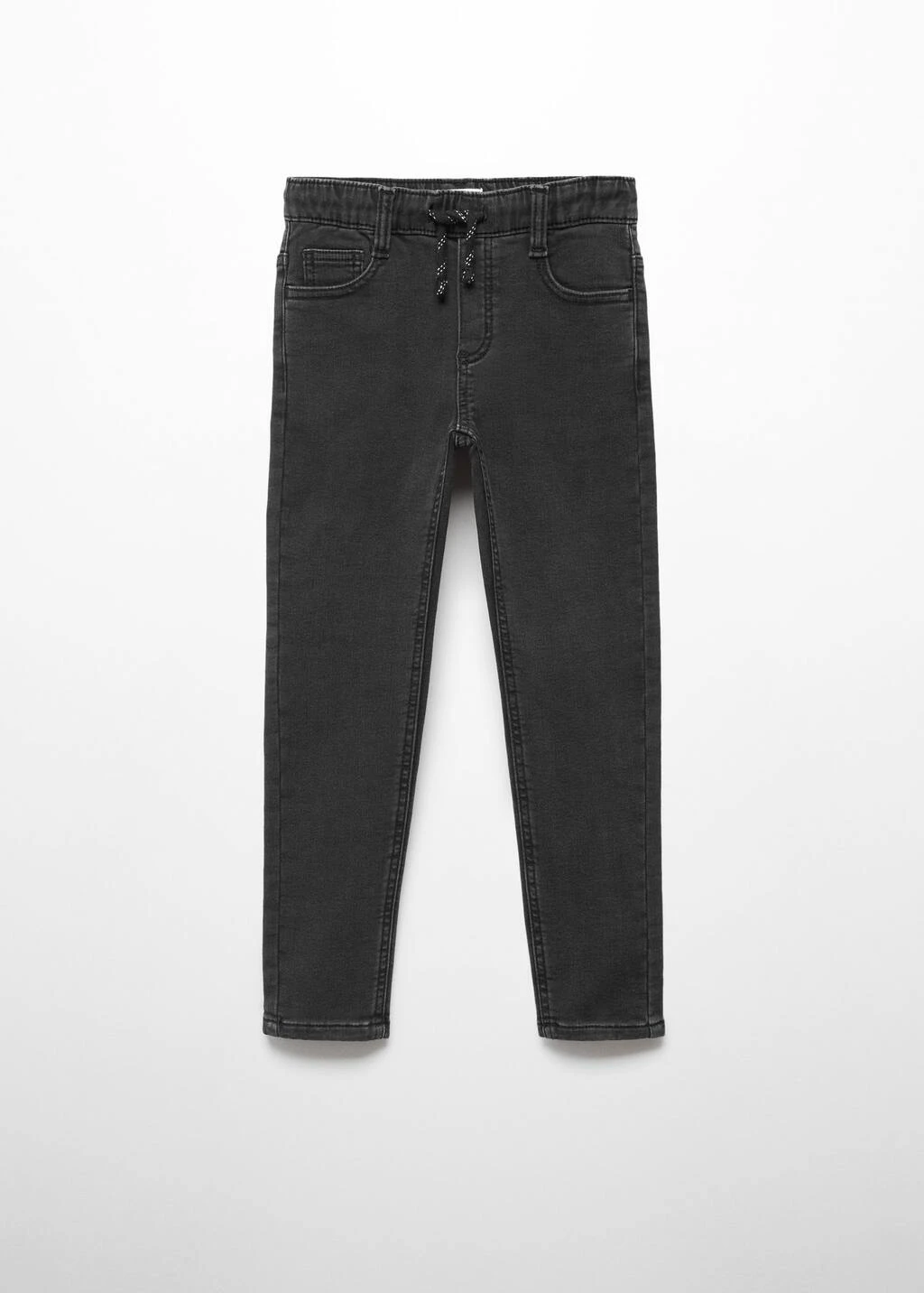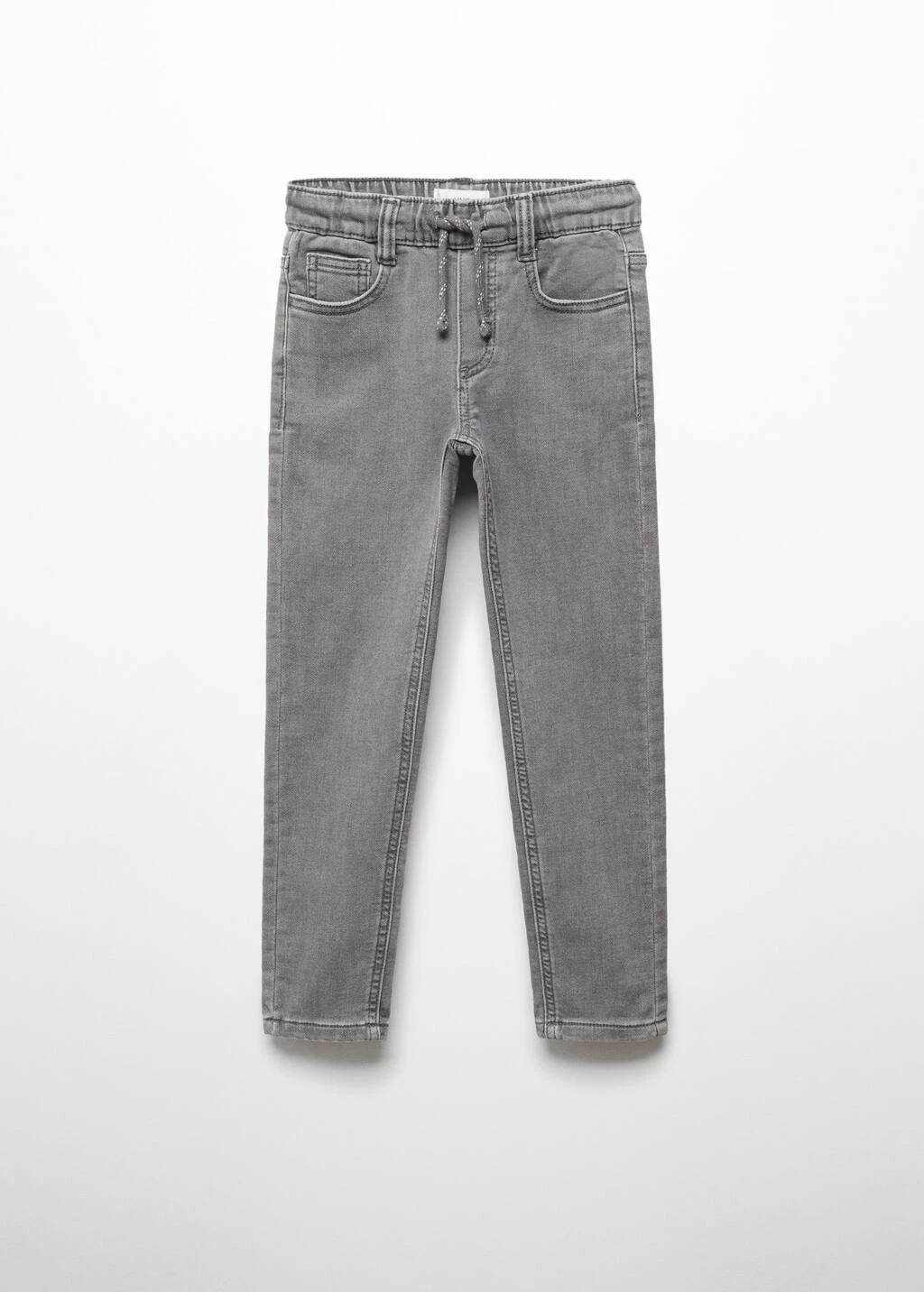 tissu en coton de style jean, comfy-fit, coupe longue, taille normale, taille elastique ajustable, fermeture a cordon, cinq pochesComposition: 77% coton,21% polyester,1% elasthanne,1% viscose
