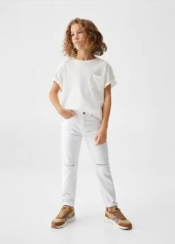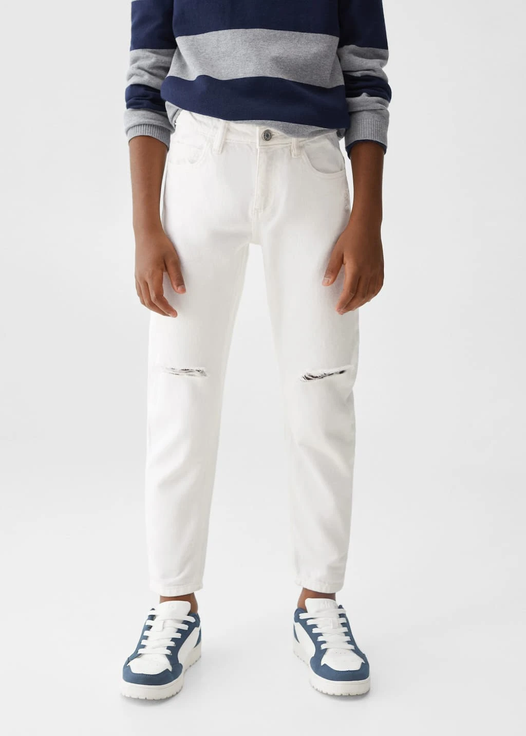 100 % coton, coupe droite, taille normale, dechirures decoratives, cinq poches, fermeture eclair avec boutonComposition: 100% coton