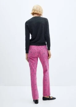 tissu en coton de style jean, coupe droite, taille haute, imprime floral, passants pour la ceinture, cinq poches, fermeture eclair avec bouton, longueur interieure 79 cm, le mannequin mesure 179 cm et porte une taille 36Composition: 100% coton