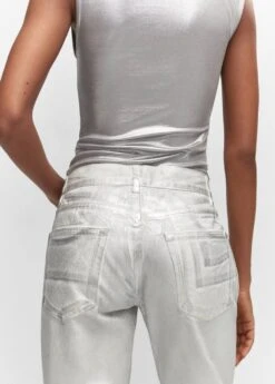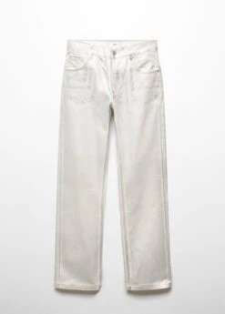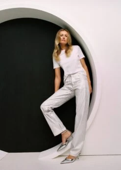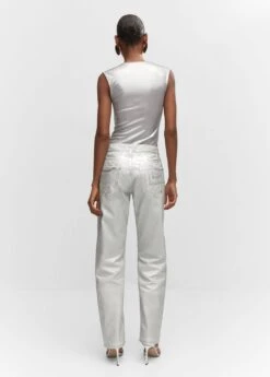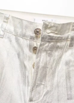 tissu en coton de style jean, effet metallise, coupe droite, taille normale, passants pour la ceinture, cinq poches, fermeture boutonnee sur le devant, longueur interieure 81,5 cm, le mannequin mesure 176 cm et porte une taille 36, saison des festivals, collection fetes et ceremoniesComposition: 100% coton