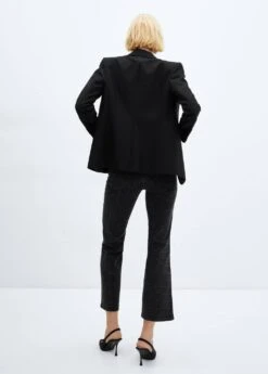 tissu en coton de style jean, droit, taille normale, cinq poches, fermeture eclair avec bouton, ornements decoratifs brillants, passants pour la ceinture, longueur interieure 72 cm, le mannequin mesure 179 cm et porte une taille 36, collection fetes et ceremoniesComposition: 98% coton,2% elasthanne