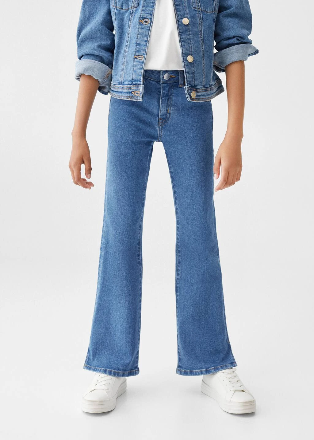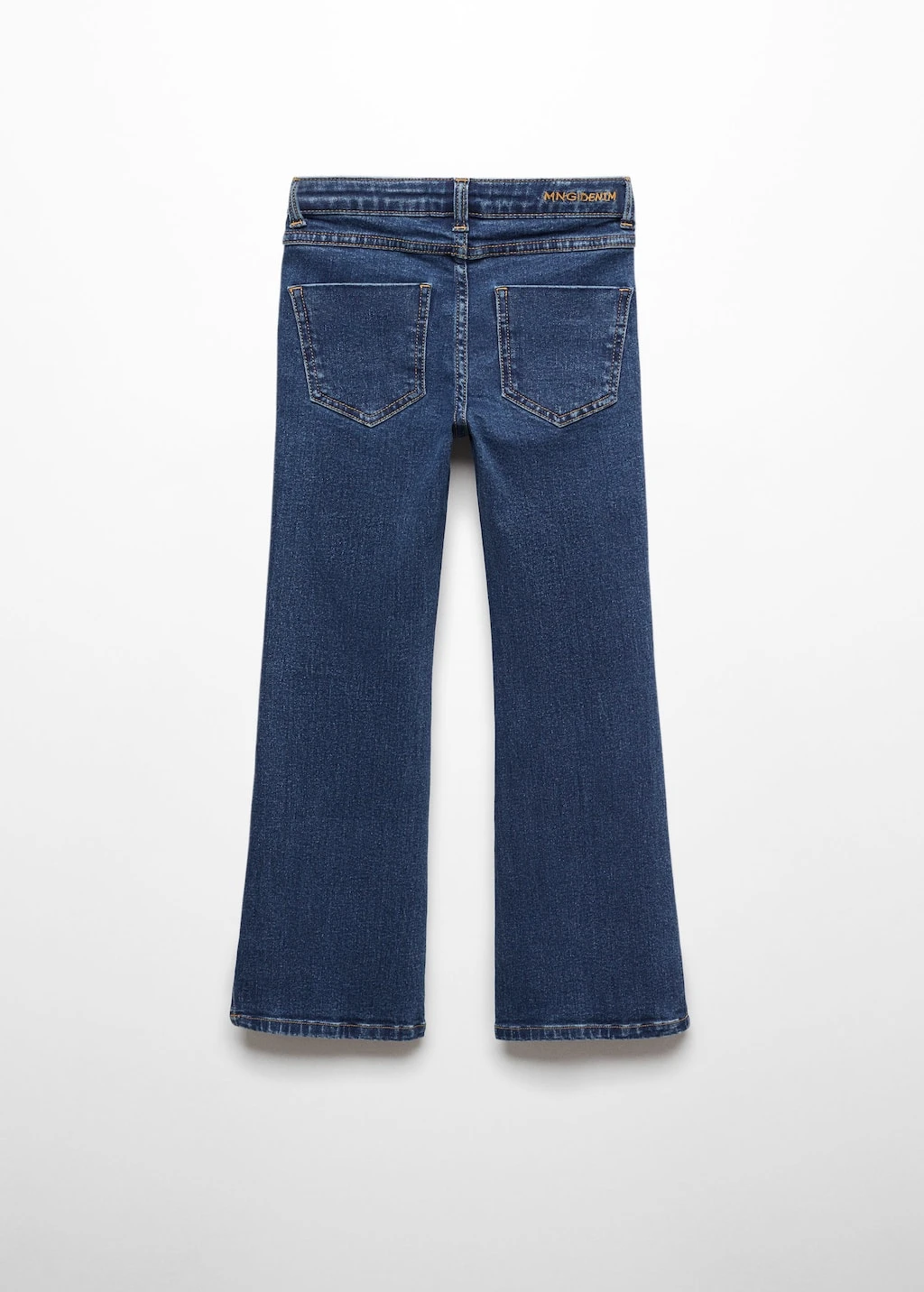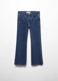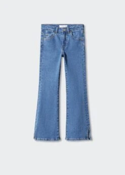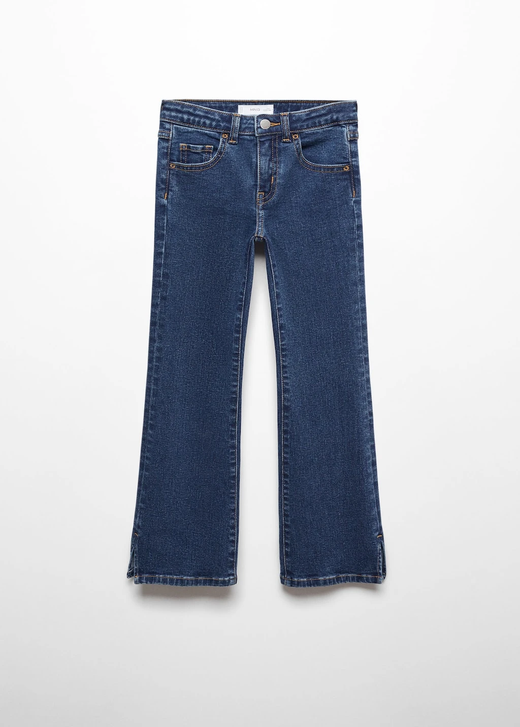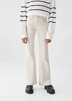 tissu en coton de style jean, tissu en denim, coupe longue, taille normale, style flare, passants pour la ceinture, cinq poches, ouvertures au bas, fermeture eclair avec boutonComposition: 99% coton,1% elasthanne