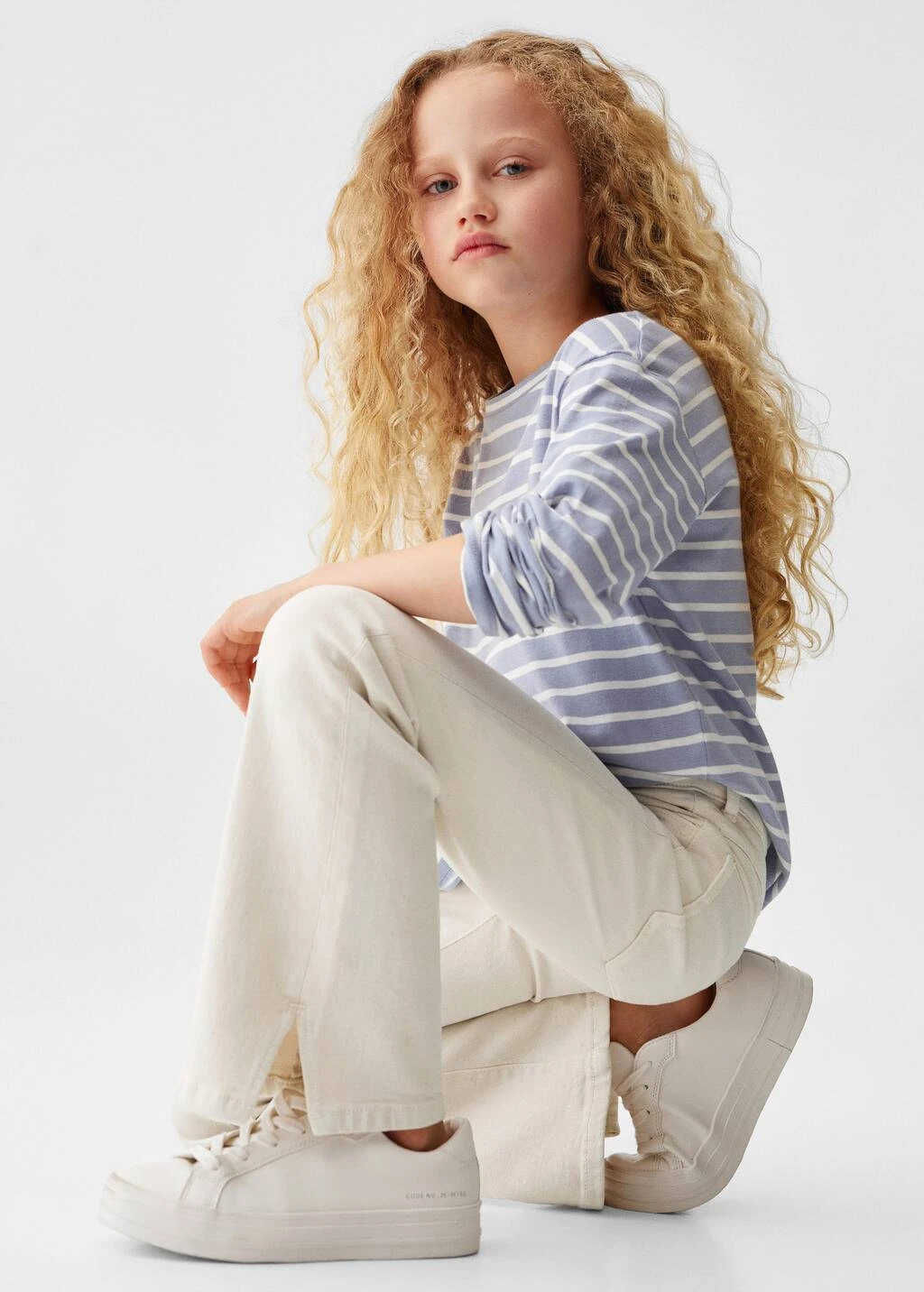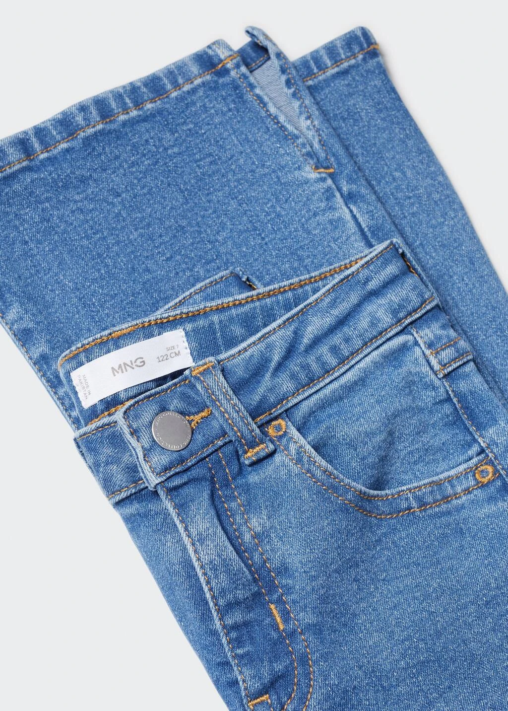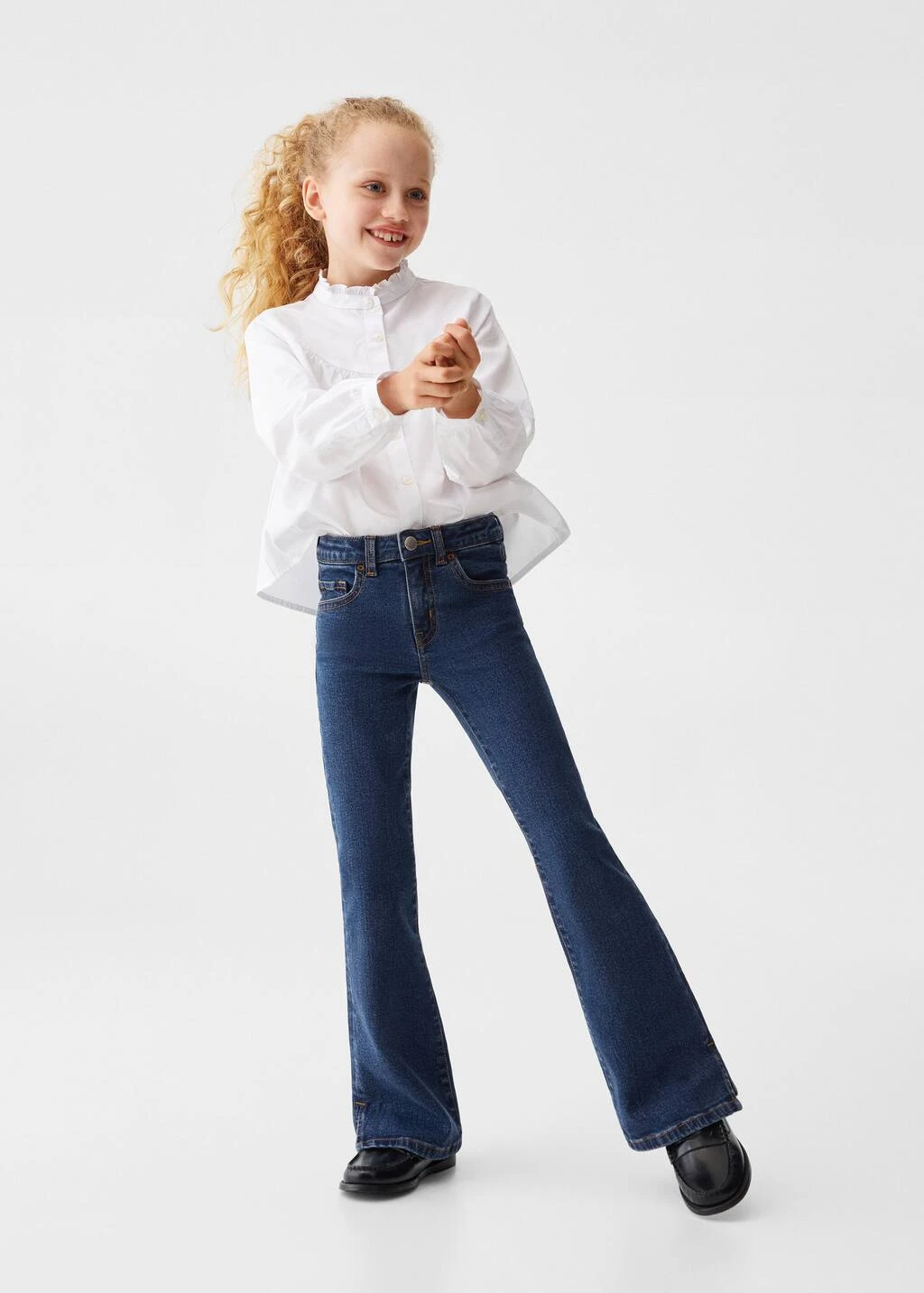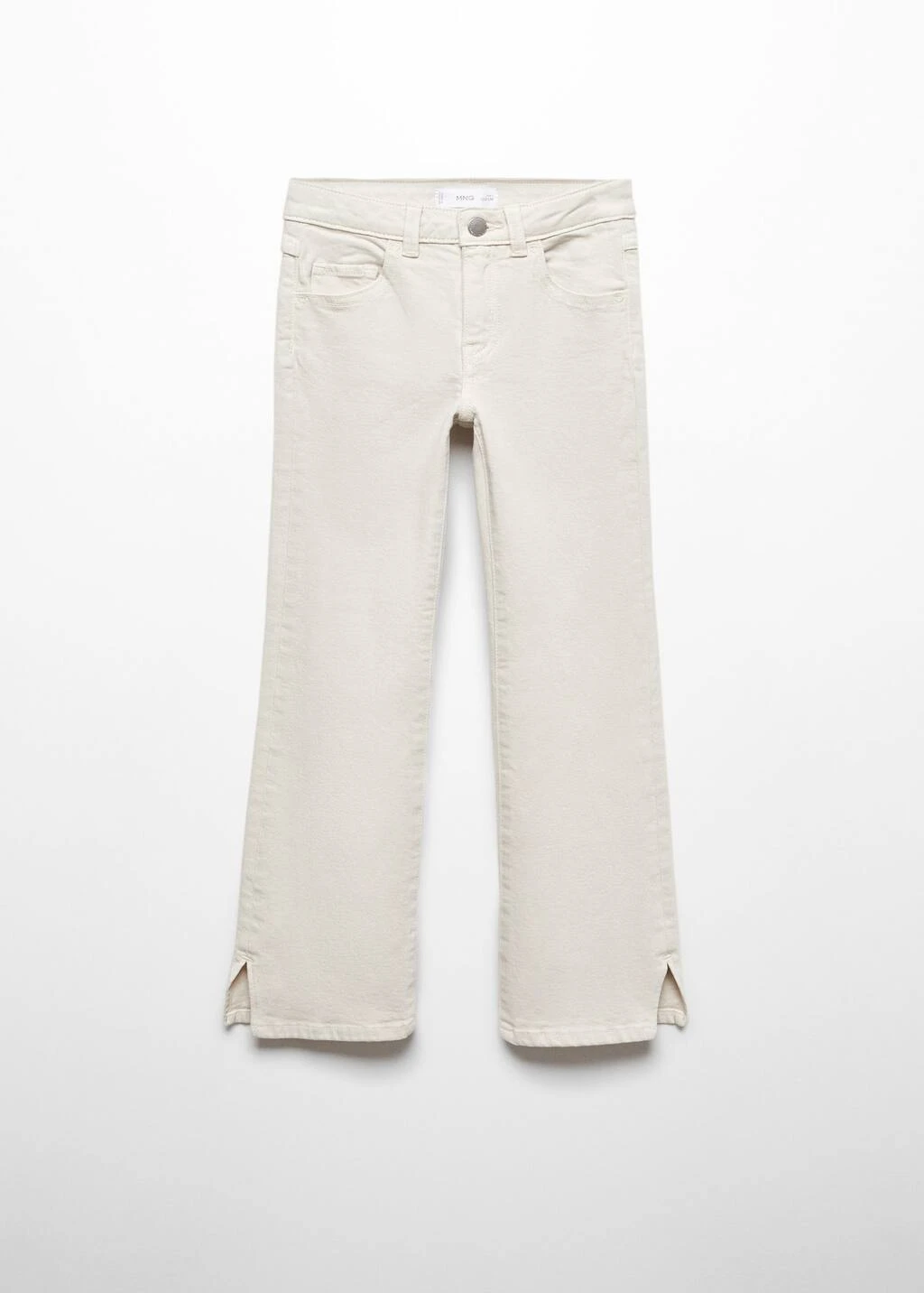 tissu en coton de style jean, tissu en denim, coupe longue, taille normale, style flare, passants pour la ceinture, cinq poches, ouvertures au bas, fermeture eclair avec boutonComposition: 99% coton,1% elasthanne