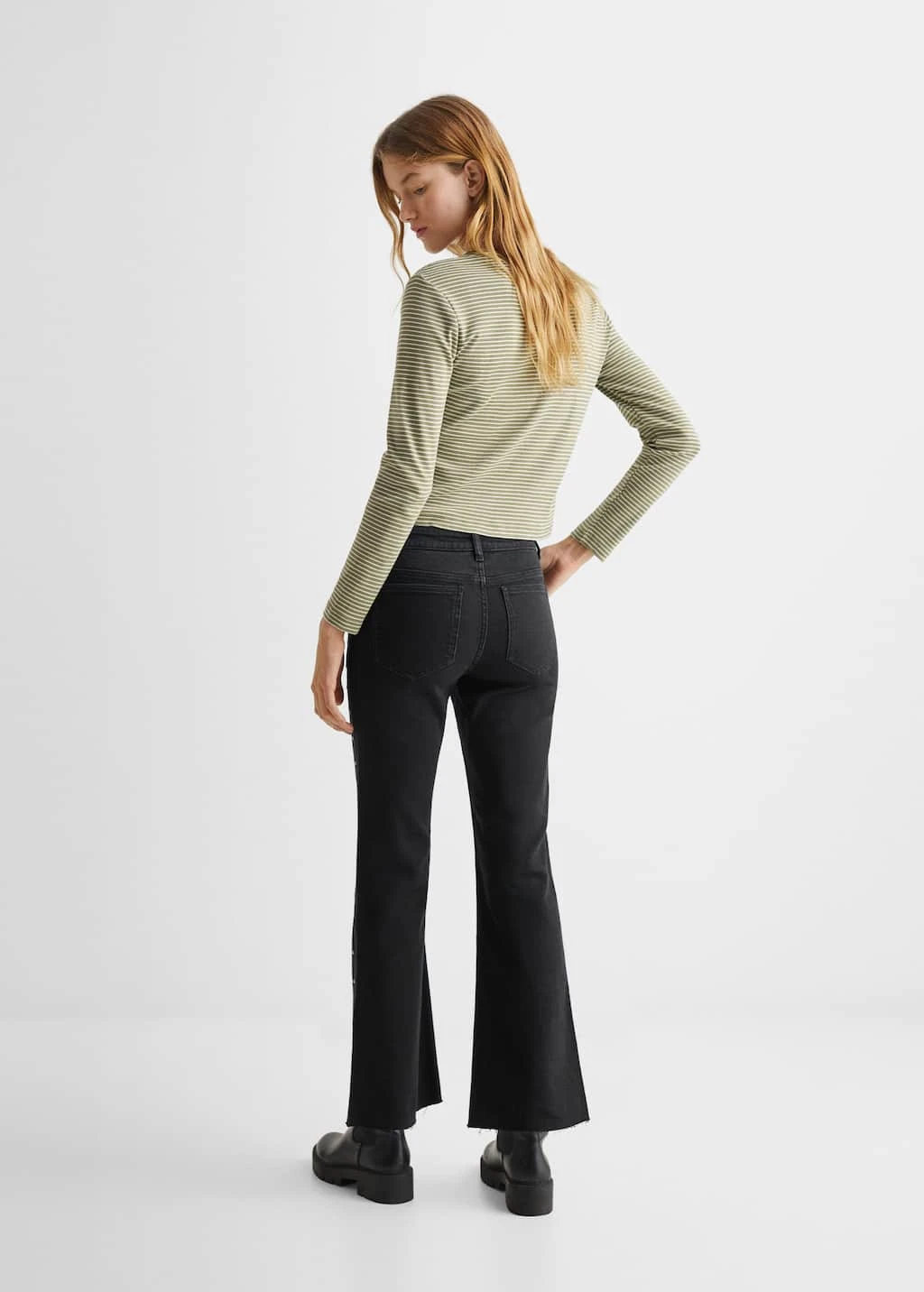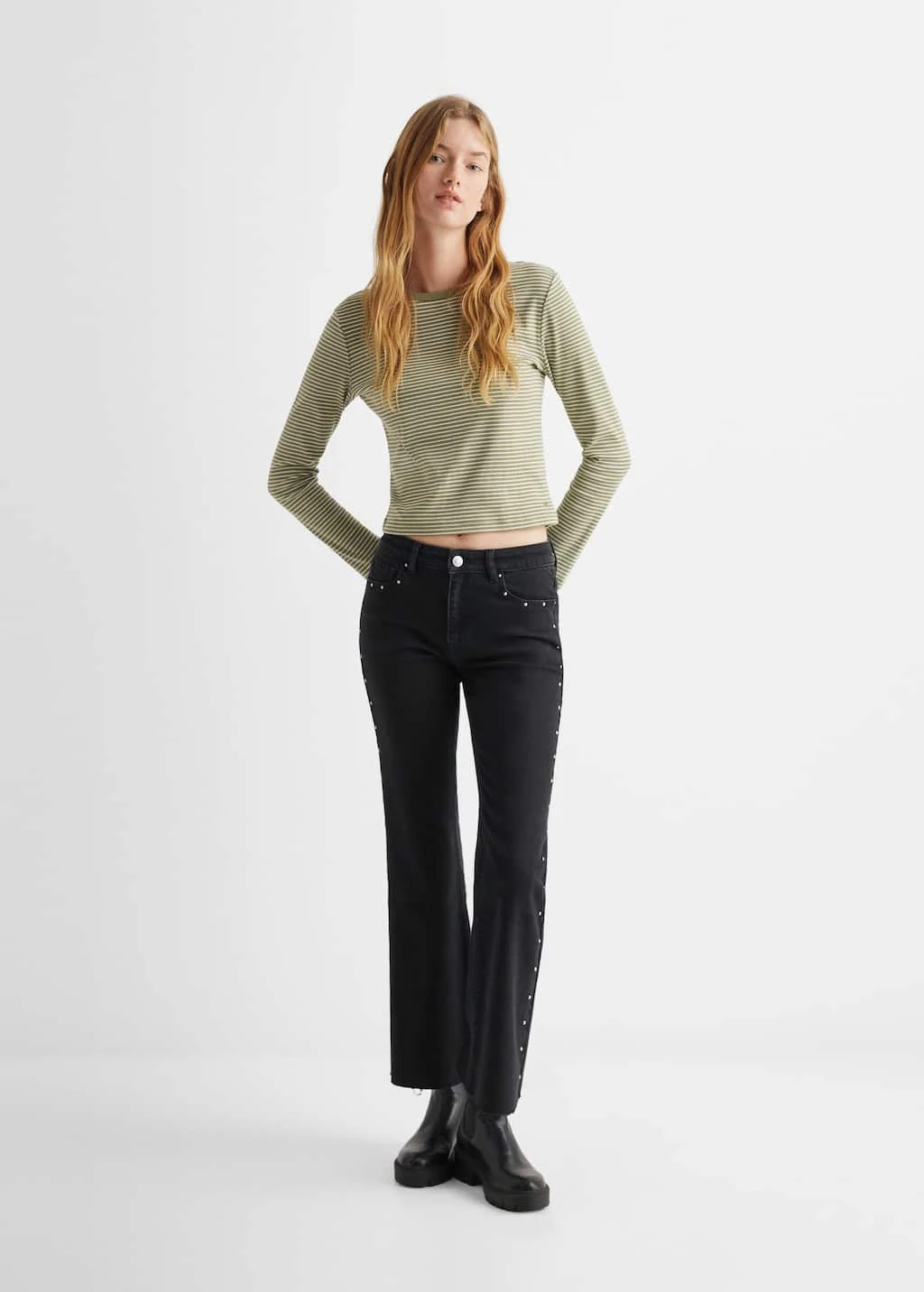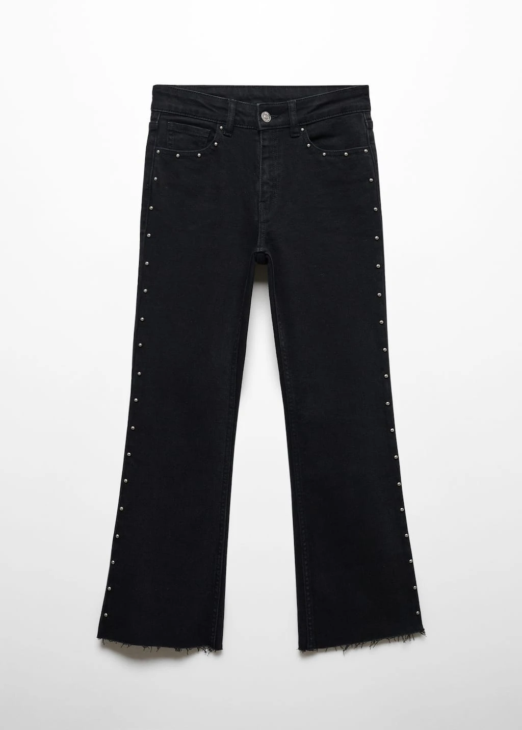 tissu en coton, coupe droite, style flare, perles decoratives, fermeture eclair avec boutonComposition: 98% coton,2% elasthanne
