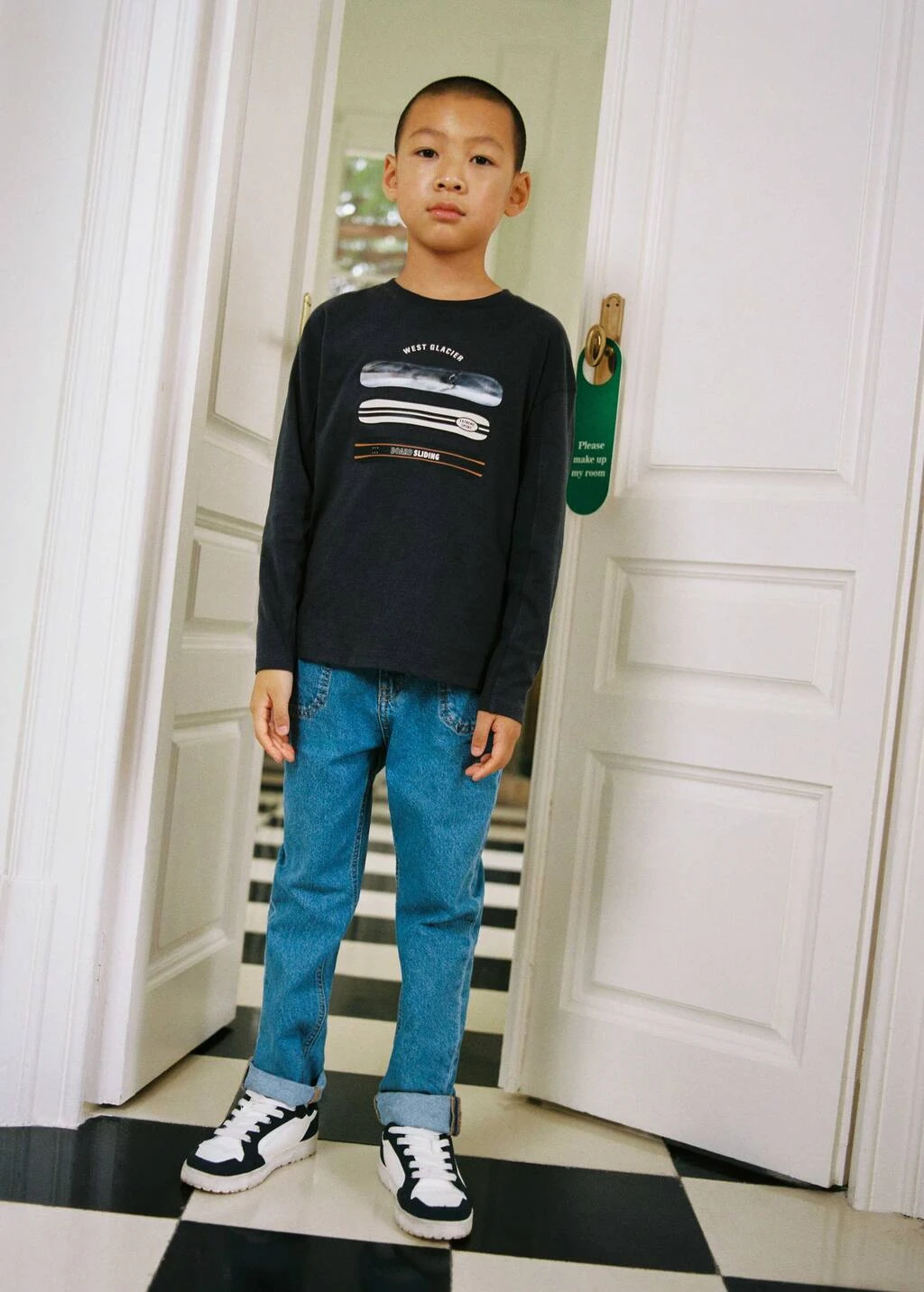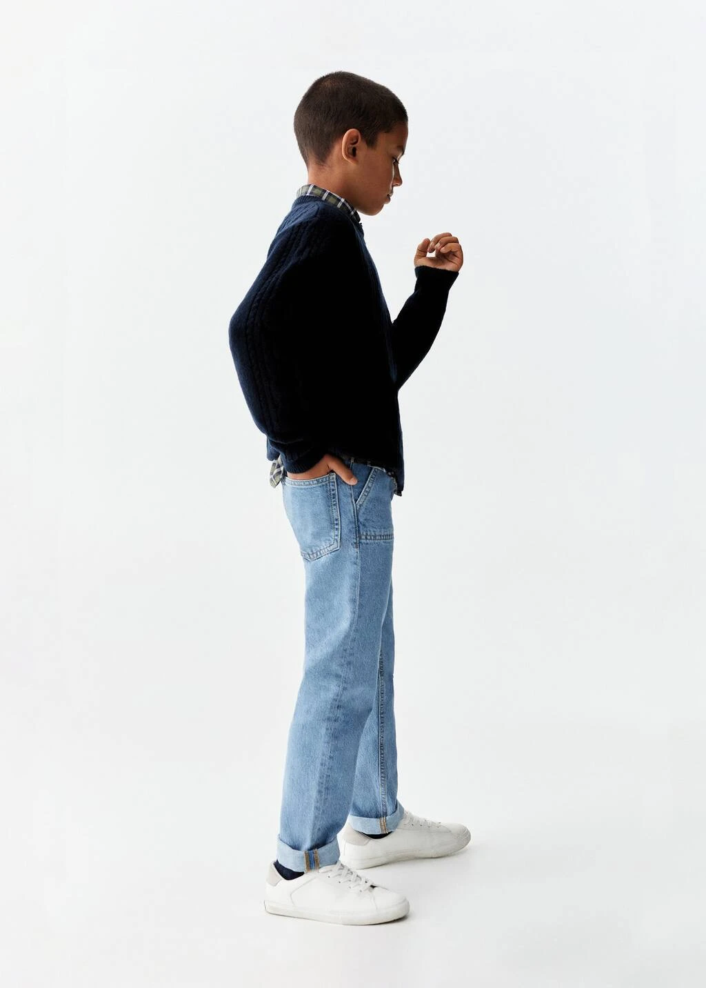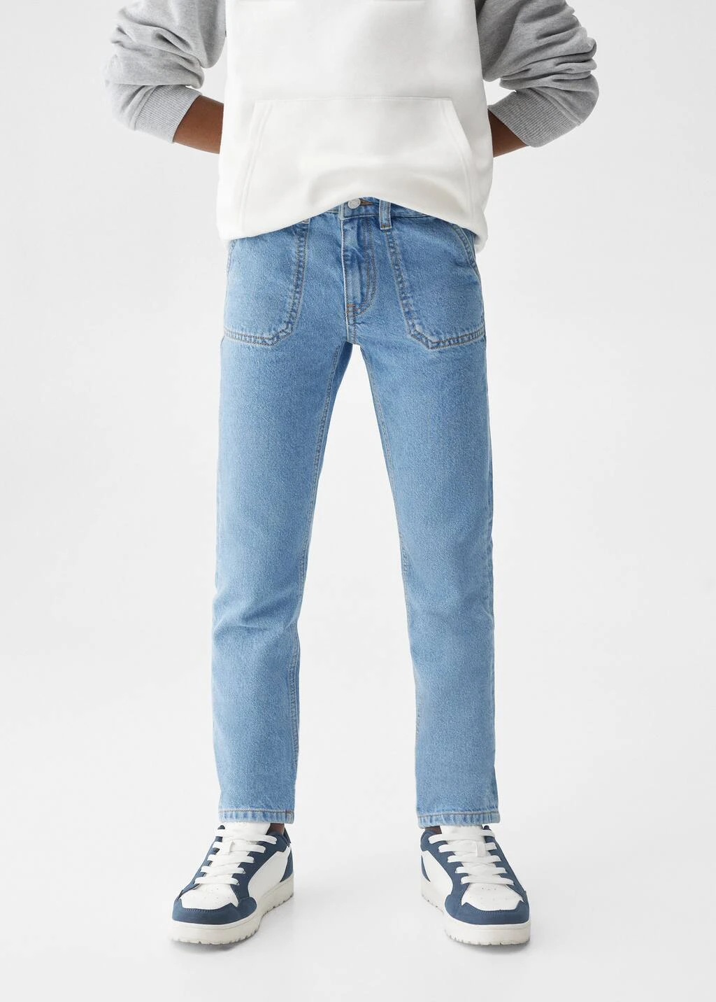 tissu en coton de style jean, coupe longue, coupe droite, slim-fit, quatre poches, fermeture eclair avec boutonComposition: 100% coton