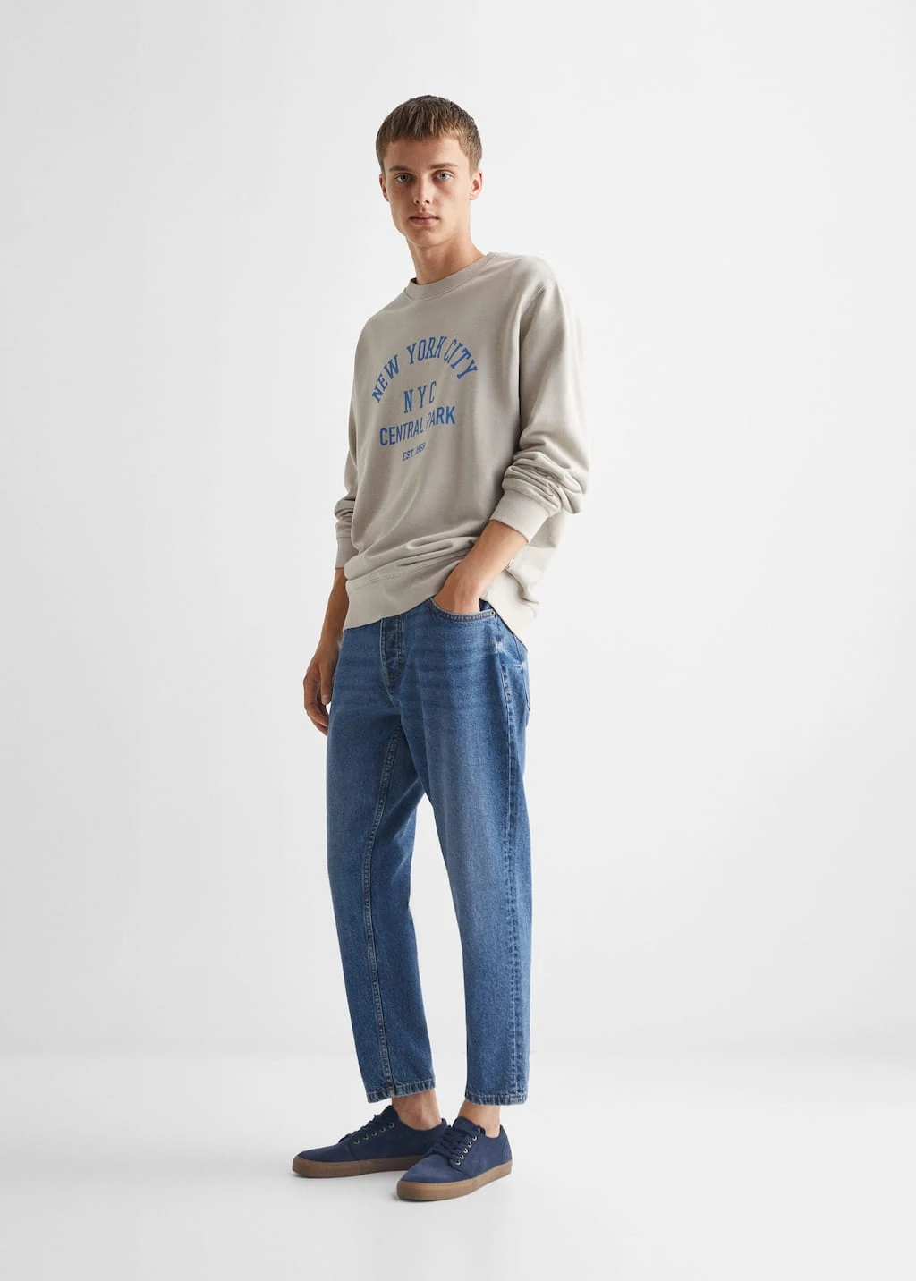 tissu en coton de style jean, tapered-fit : coupe large en haut qui se resserre depuis le genou jusqu’a la cheville, couleur effet delave, droit, cinq poches, taille normale, taille moyenne, fermeture boutonnee, le mannequin mesure 182 cm et porte une taille l, avec ce vetement en coton, vous soutenez notre investissement dans la mission de better cotton. ce tissu est un equilibre de masse qui remplace ou melange du coton better cotton avec du coton conventionnel, aussi il est possible qu’il ne contienne pas de better cotton. les agriculteurs partenaires beneficient d’un soutien et d’une formation continus.COMPOSITION:100% COTON