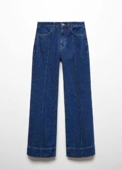 tissu en coton de style jean, coupe wideleg, coupe longue, taille haute, passants pour la ceinture, quatre poches, fermeture eclair avec bouton, le mannequin mesure 178 cm et porte une taille 36, longueur interieure 84,5 cm, total look, disponible plusComposition: 100% coton