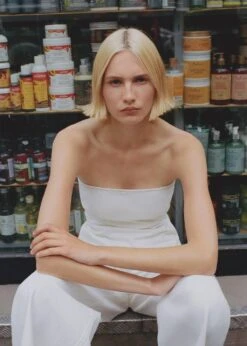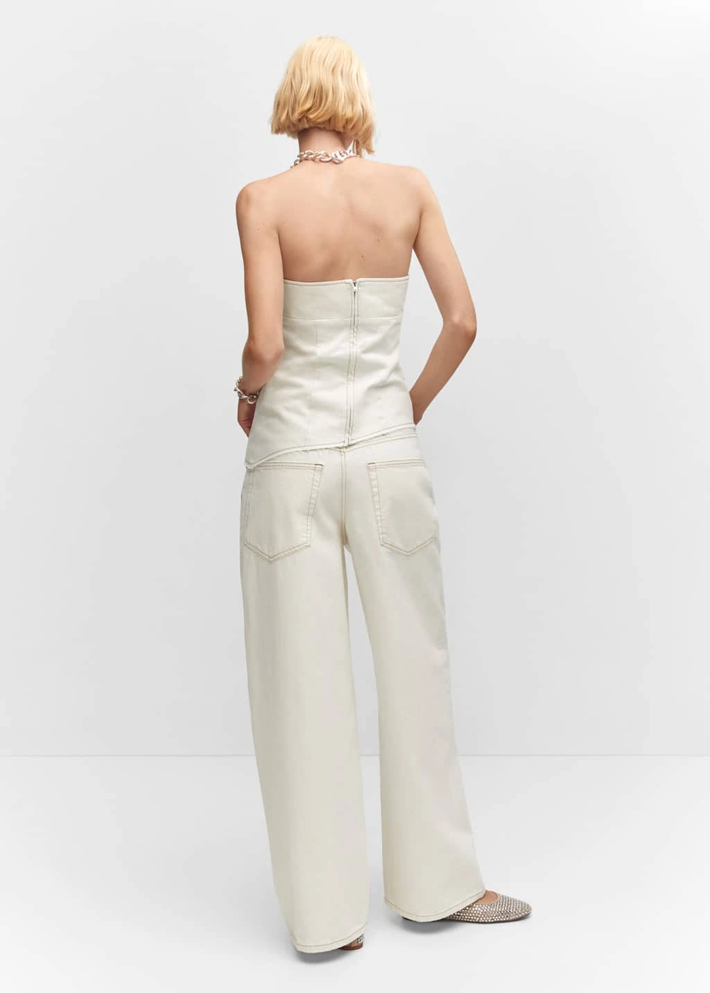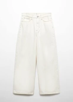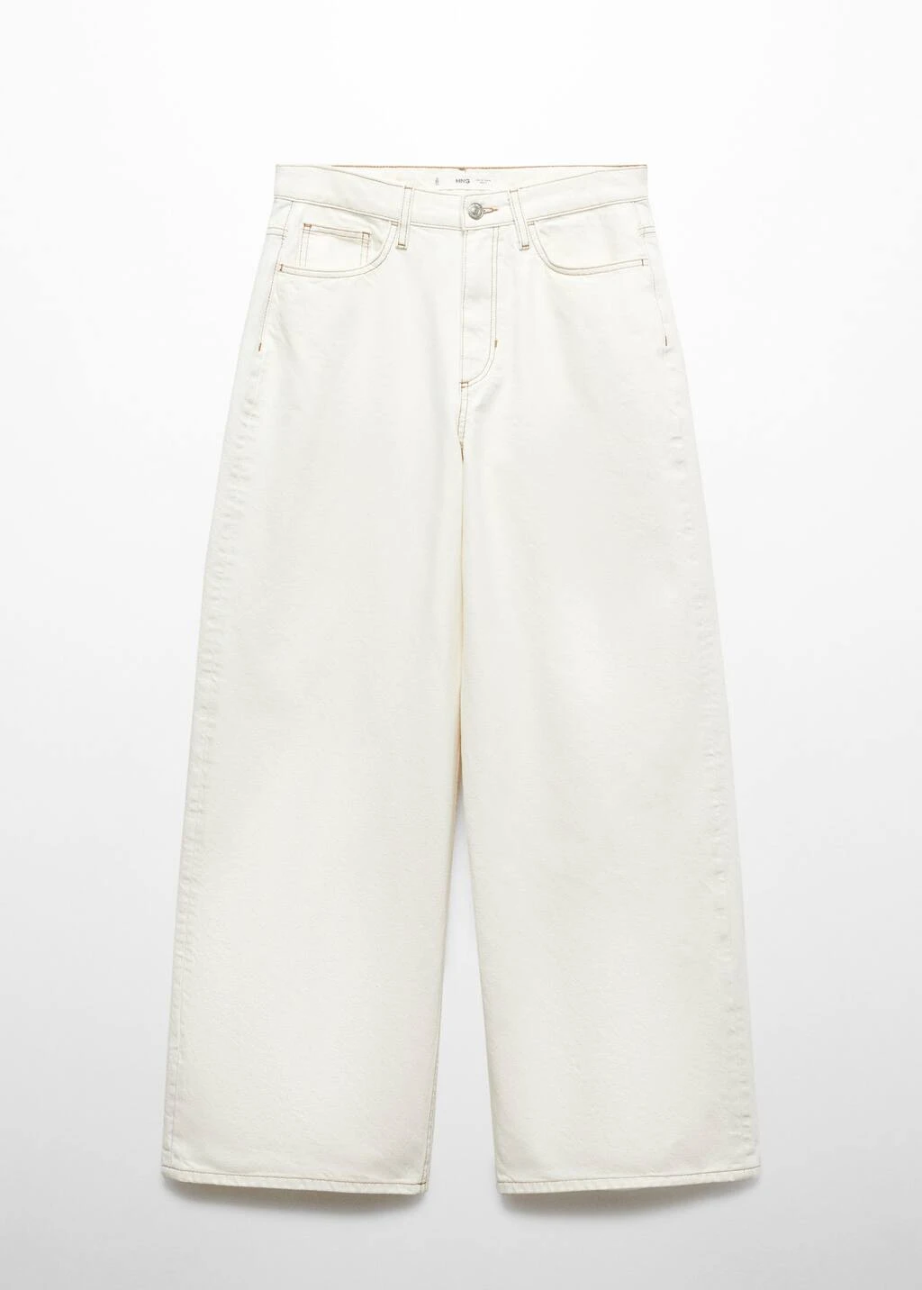 tissu en coton de style jean, coupe wideleg, coupe longue, taille haute, passants pour la ceinture, cinq poches, fermeture eclair avec bouton, longueur interieure 79,5 cm, le mannequin mesure 179 cm et porte une taille 36, total lookComposition: 100% coton