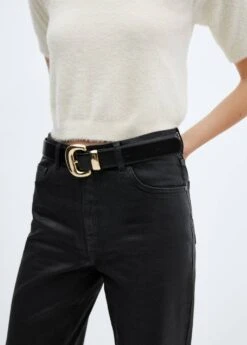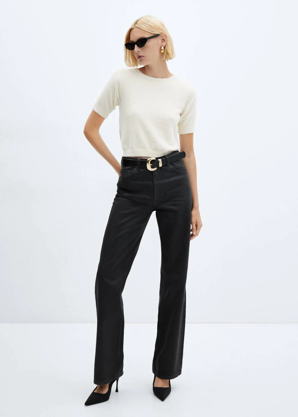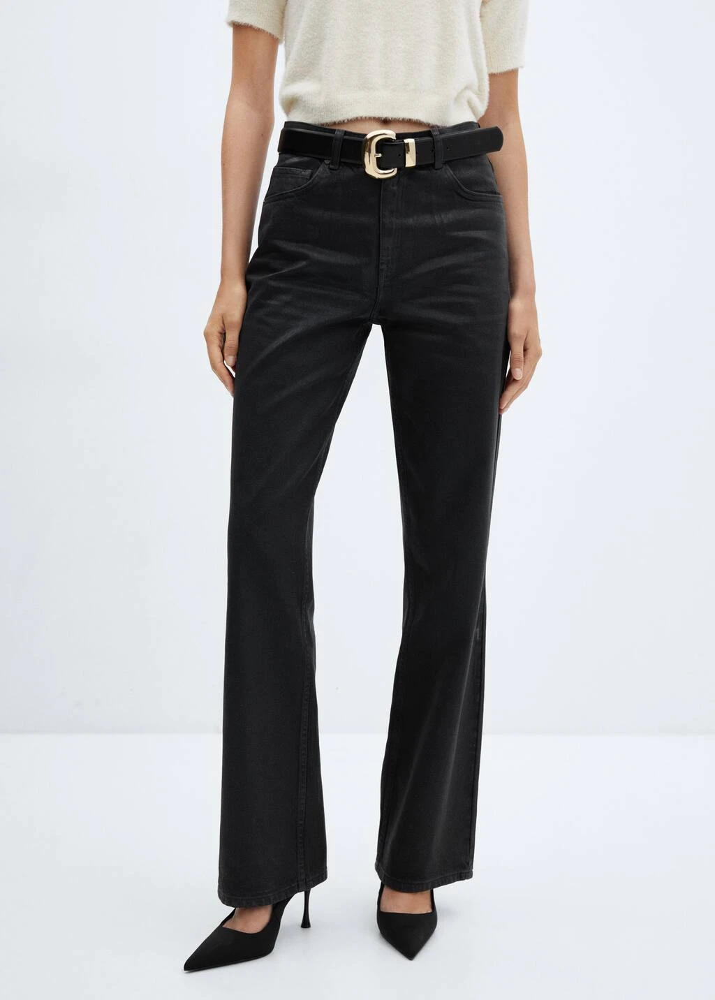 tissu effet brillant, tissu en coton de style jean, coupe longue, taille normale, fermeture eclair avec bouton, cinq poches, passants pour la ceinture, le mannequin mesure 179 cm et porte une taille 36.Composition: 100% coton