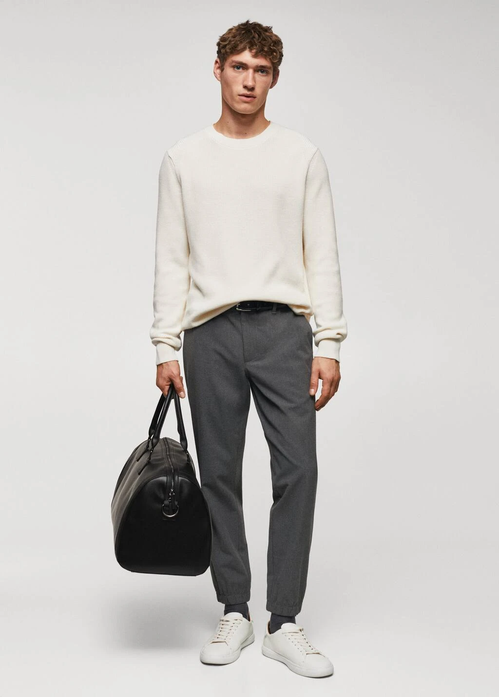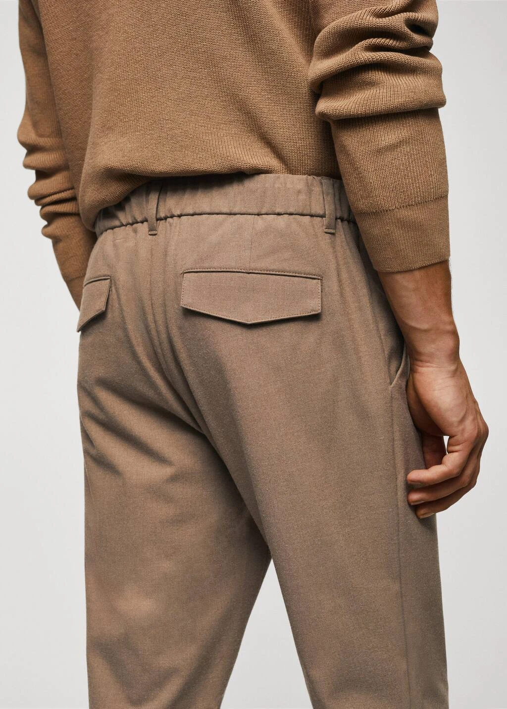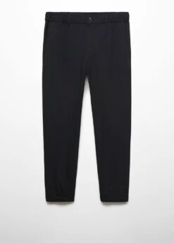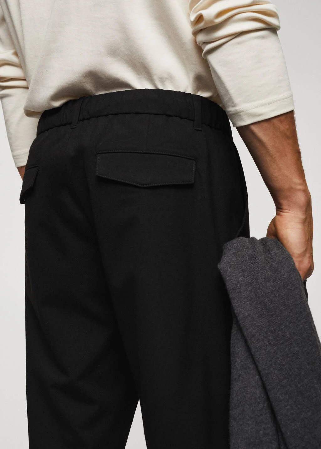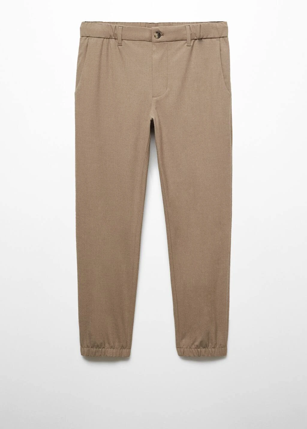 slim-fit, tissu legerement extensible, coupe jogging, double bouton et fermeture eclair, cordon interieur de serrage a la taille, passants de ceinture , deux poches avant, bas elastique, deux poches a rabat a l’arriere, le mannequin mesure 190 cm et porte une taille 42Composition: 68% polyester,28% viscose,4% elasthanne. Doublure poches: 65% polyester,35% coton