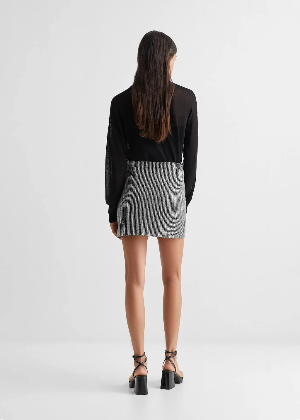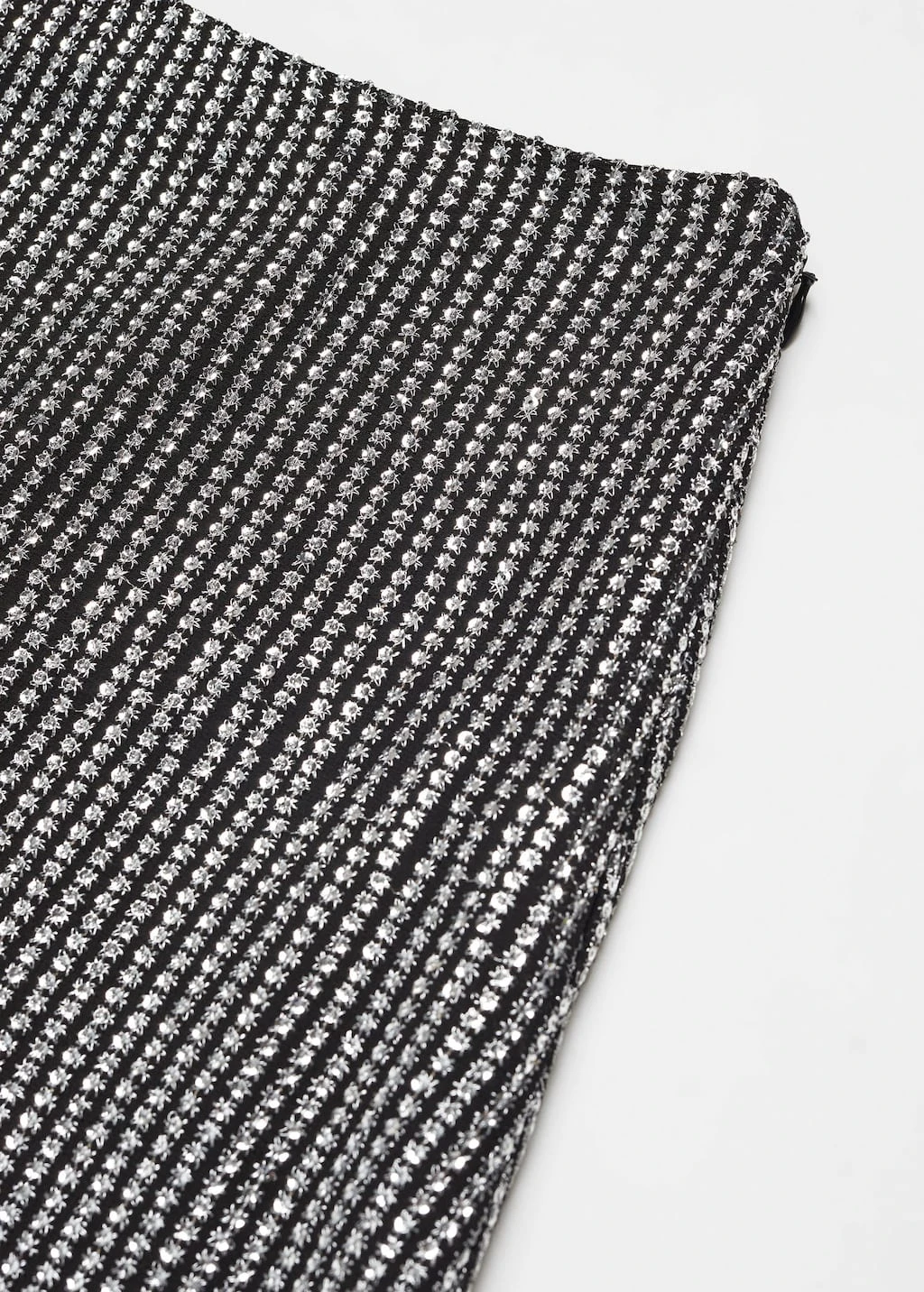 doublure en coton, tissu a sequins, coupe courte, taille mini, taille normale, fermeture laterale, fermeture eclair, le mannequin mesure 172 cm et porte une taille mComposition: 100% polyester. Doublure: 100% coton