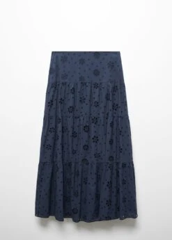 tissu 100 % coton, tissu a broderies anglaises, evase, coupe longue, taille basse, fermeture eclair laterale, details ajoures, details brodes, doublure, total lookComposition: 100% coton. Doublure: 100% coton