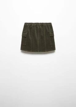 tissu en velours cotele, design cargo, coupe droite, coupe courte, deux poches cargo, taille elastique, fermeture frontale, fermeture a boutonComposition: 98% coton,2% elasthanne