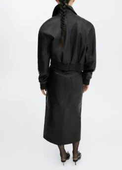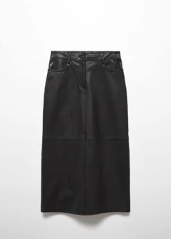 collection selection, 100 % cuir ovin, coupe midi, coupe droite, deux poches laterales, deux poches plaquees a l’arriere, fermeture eclair avec bouton, passants de ceinture , bas fendu a l’arriere, coutures decoratives, doublure, total look, une selection de pieces qui vous accompagneront lors du retour au bureau. confectionnee avec des matieres de qualite pour creer une garde-robe feminine et contemporaine pour votre quotidien.