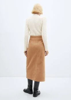100 % coton, tissu en velours cotele, coupe midi, coupe asymetrique, taille haute, fermeture a l’avant a boutons-pression, ouverture en bas a l’avantComposition: 100% coton
