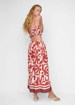 tissu fluide, evase, coupe longue, taille haute, imprime fleurs, poches laterales, taille elastiquee, sans fermeture, total lookComposition: 86% viscose,11% polyester,3% polyamide
