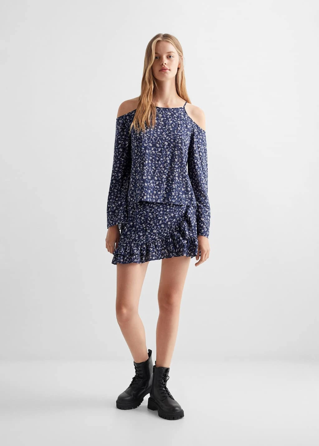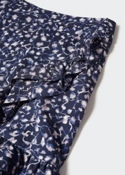 tissu fluide, imprime floral, coupe courte, coupe droite, croise, base volantee, taille elastiquee a l’arriereComposition: 100% modal. Doublure: 100% coton