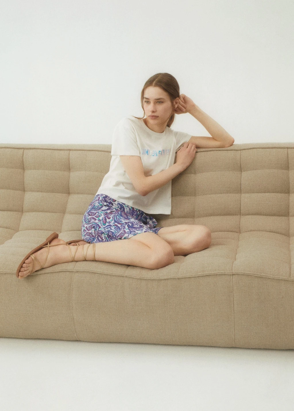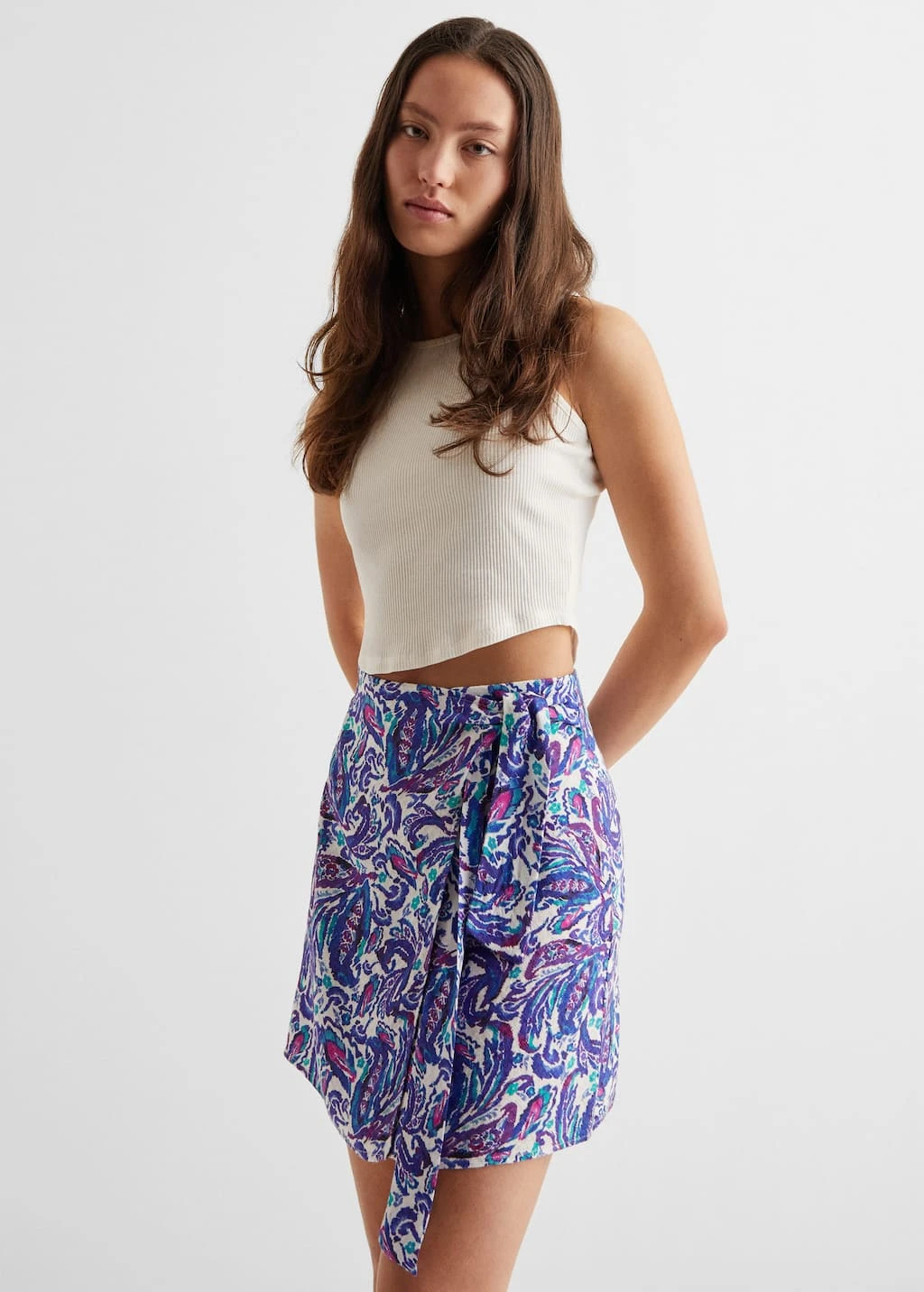 droit, coupe courte, imprime, fermeture noueeComposition: 100% viscose
