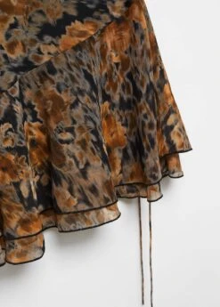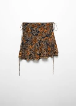 tissu fluide, tissu en gaze, droit, coupe courte, imprime floral, fermeture a nœuds sur les cotesComposition: 100% polyester. Doublure: 100% polyester
