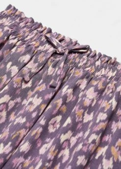 imprime, coupe courte, droit, base volantee, taille elastique, fermeture a cordonComposition: 100% viscose