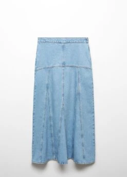 tissu en coton de style jean, tissu en coton organique recycle melange, coupe longue, flare, taille normale, fermeture eclair laterale, coutures decoratives, le mannequin mesure 179 cm et porte une taille 36Composition: 100% coton