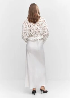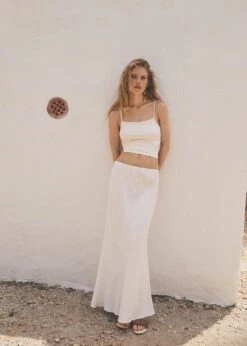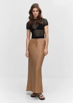 coupe midi, tissu en lin melange, elastique pour cheveux, evase, coupe longue, taille haute, taille elastiquee, fermeture a nouerComposition: 70% viscose,30% lin