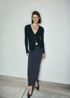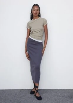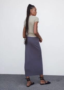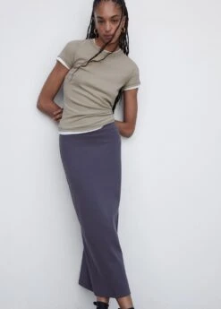 tissu de coton melange, tissu en maille, ajuste, coupe midi, taille elastiquee, sans fermetureComposition: 96% coton,4% elasthanne