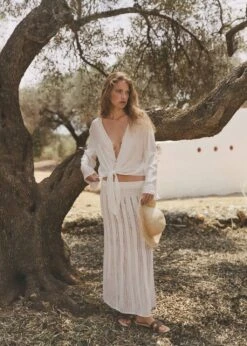 tissu 100 % coton, tissu en maille, coupe droite, coupe midi, taille elastiquee, details ajoures, total lookComposition: 100% coton