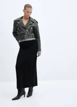 tissu fluide, tissu en maille fine, coupe longue, coupe droite, deux poches cargo, taille elastiquee, sans fermeture, bas fendu a l’arriereComposition: 50% polyamide,50% viscose