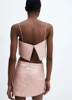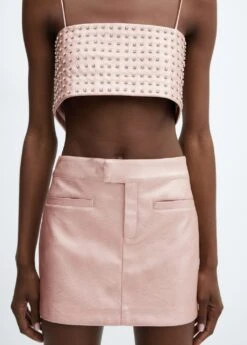 similicuir, taille mini, coupe cintree, finition metallisee, fermeture eclair avec crochet et bouton dissimules, deux poches plaquees sur le devant, doublure, collection fetes et ceremoniesComposition: 100% polyester. Doublure: 100% polyester. Revêtement: 100% polyurethane