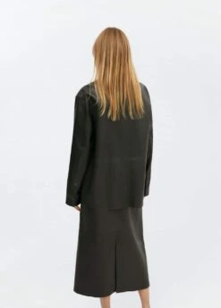 collection selection, 100 % cuir ovin, coupe midi, coupe droite, fermeture eclair laterale, detail d’ouverture au dos, coutures decoratives, doublure, une selection de pieces qui vous accompagneront lors du retour au bureau. confectionnee avec des matieres de qualite pour creer une garde-robe feminine et contemporaine pour votre quotidien.