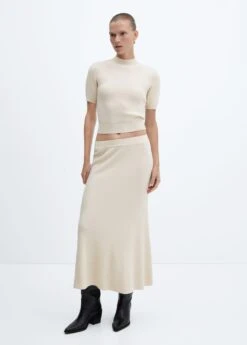 tissu en maille fine, coupe midi, evase, taille elastiquee, sans fermeture, total lookComposition: 50% viscose,27% polyester,23% polyamide