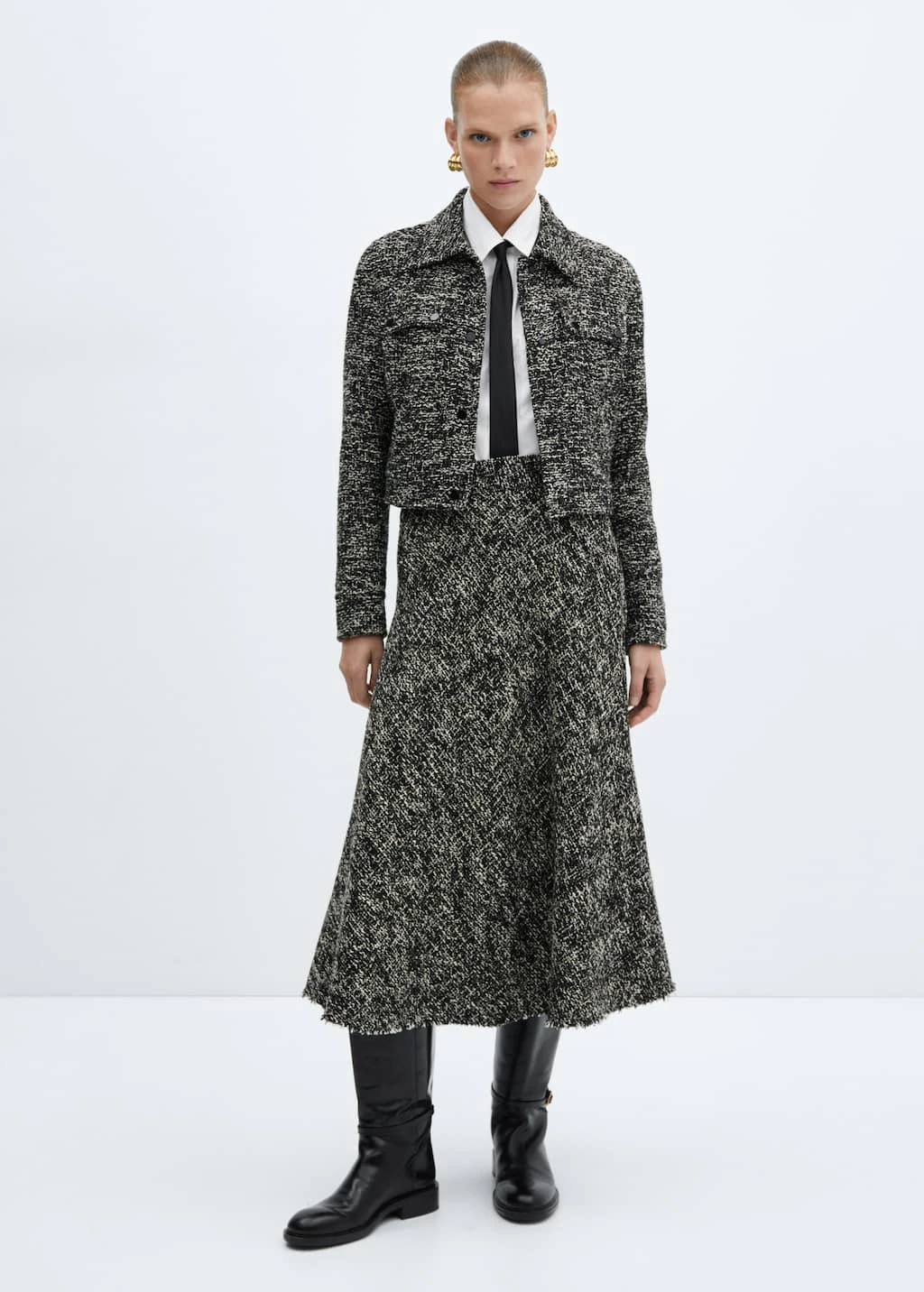 tissu de coton melange, tissu tweed, coupe midi, evase, imprime jaspe, taille normale, sans fermetureComposition: 48% coton,27% acrylique,22% polyester,3% viscose