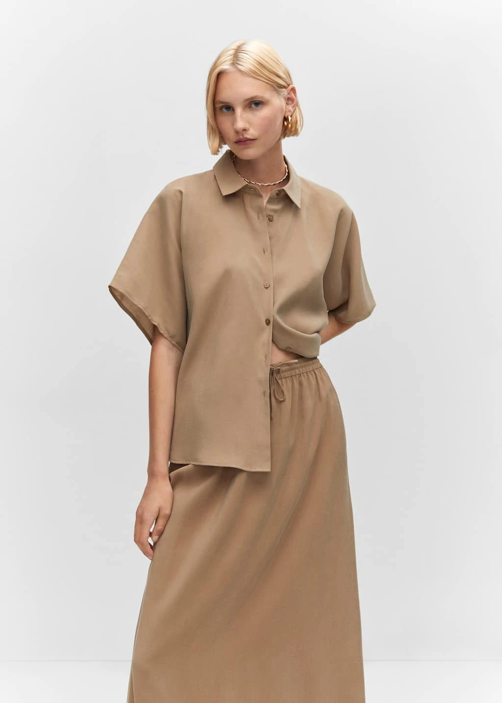 tissu en modal melange, droit, coupe longue, taille elastiquee, fermeture a nouer, total lookComposition: 86% modal,14% polyester