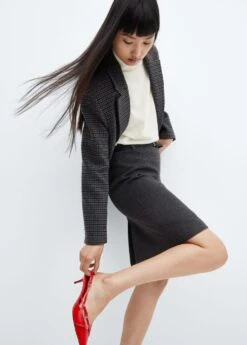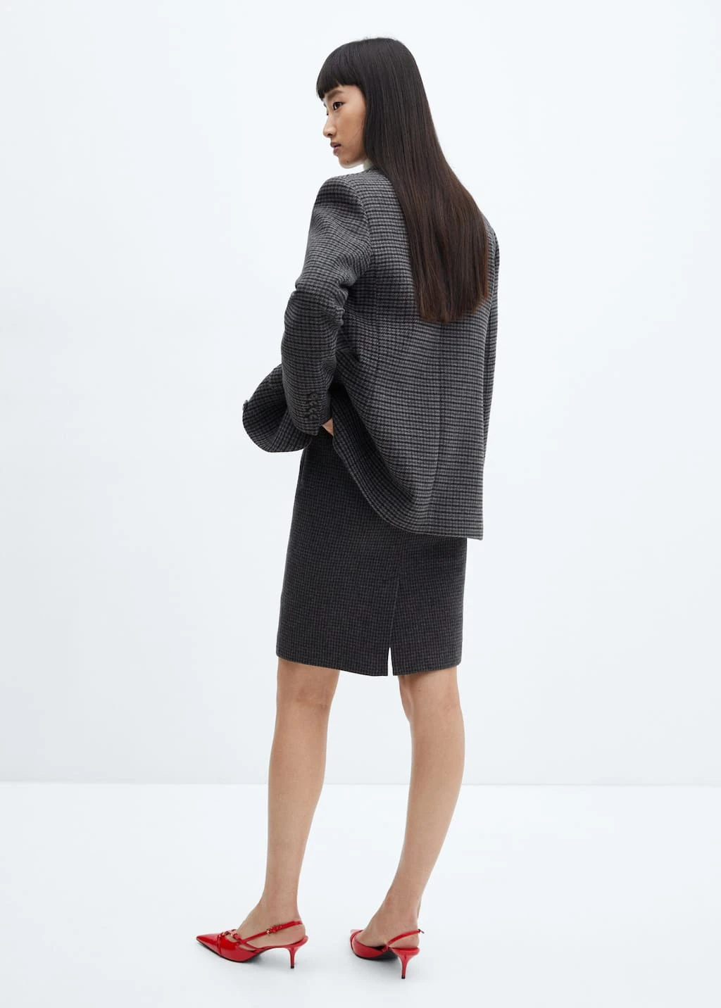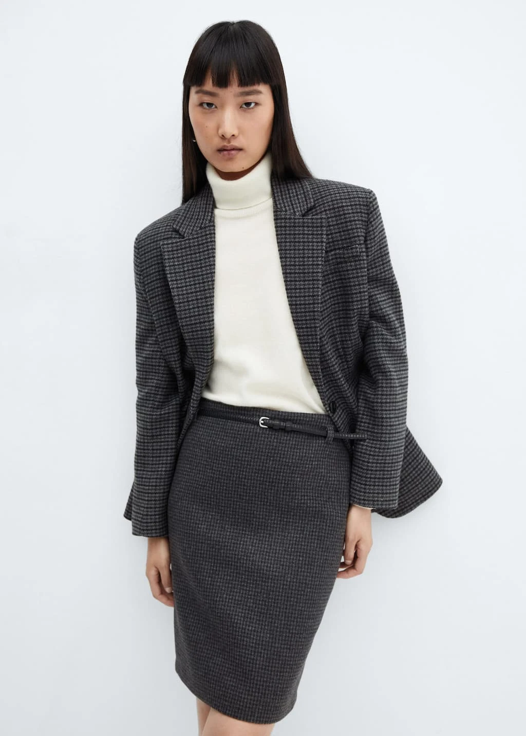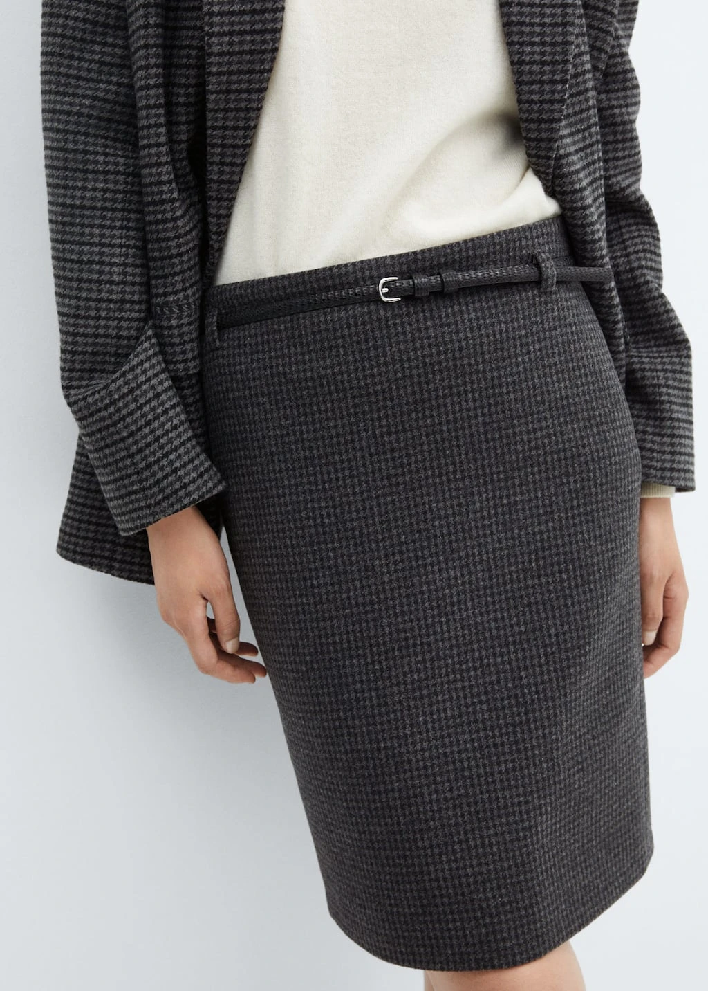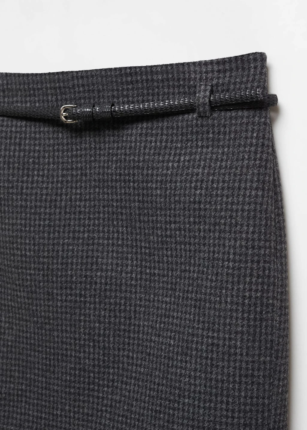 tissu de laine melange, coupe midi, crayon, coupe droite, imprime pied-de-poule, taille basse, fermeture arriere, ceinture amovible, passants pour la ceinture, doublureComposition: 68% laine,18% polyester,8% polyamide,5% acrylique,1% coton. Doublure: 96% polyester,4% elasthanne