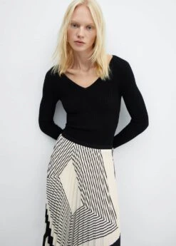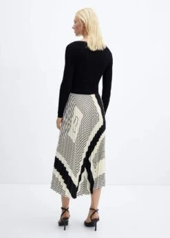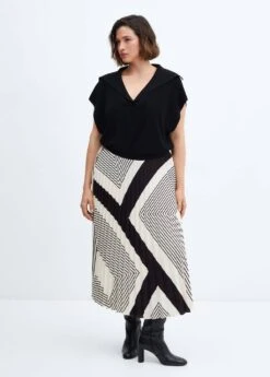 tissu fluide, coupe midi, design plisse, imprime geometrique, taille elastiquee, sans fermeture, disponible plusComposition: 100% polyester