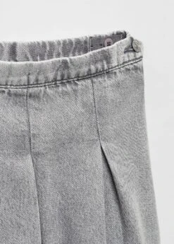 tissu en coton de style jean, coupe courte, elastique pour cheveux, gros plis, elastique reglable, fermeture laterale, fermeture eclair avec boutonComposition: 100% coton