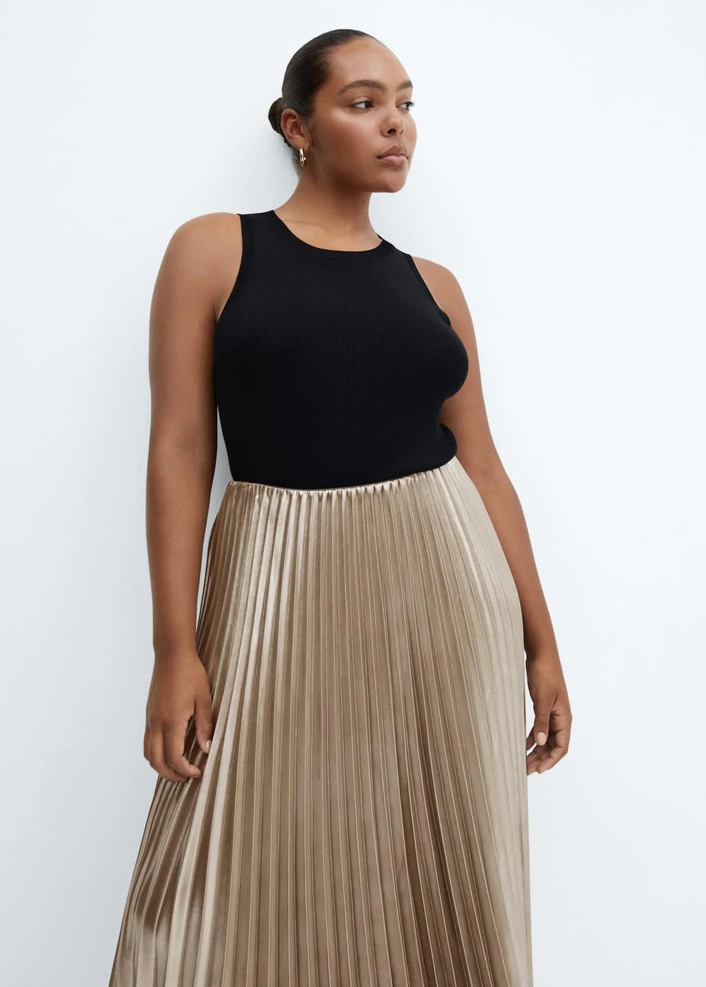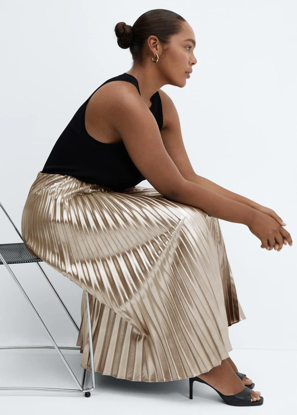 tissu fluide, coupe midi, design plisse, evase, taille normale, finition metallisee, taille elastiquee, sans fermeture, disponible plusComposition: 100% polyester