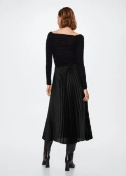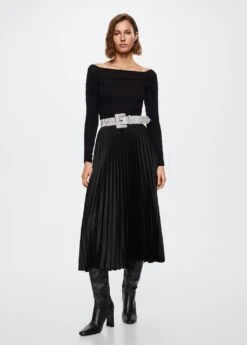 elastique pour cheveux, sans doublure interieure, sans fermeture, tissu satine, tissu plisse, tissu leger, coupe midi, evase, taille elastique, collection fetes et ceremoniesCOMPOSITION:100% POLYESTER