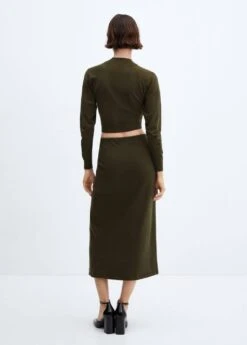 tissu en maille fine, croise, coupe droite, coupe midi, taille haute, taille elastiquee, sans fermetureComposition: 52% viscose,28% polyester,20% polyamide