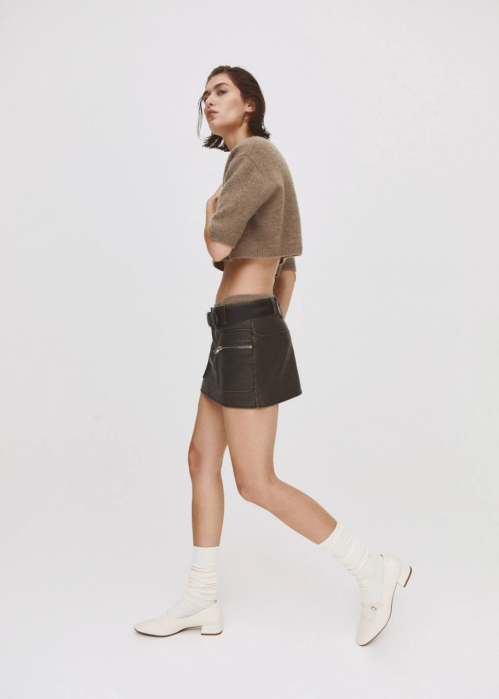 similicuir, effet use, droit, coupe courte, taille basse, passants pour la ceinture, poches zippees sur le devant, fermeture eclair avec bouton, doublure, total lookComposition: 100% polyester. Doublure: 96% polyester,4% elasthanne. Revêtement: 100% polyurethane