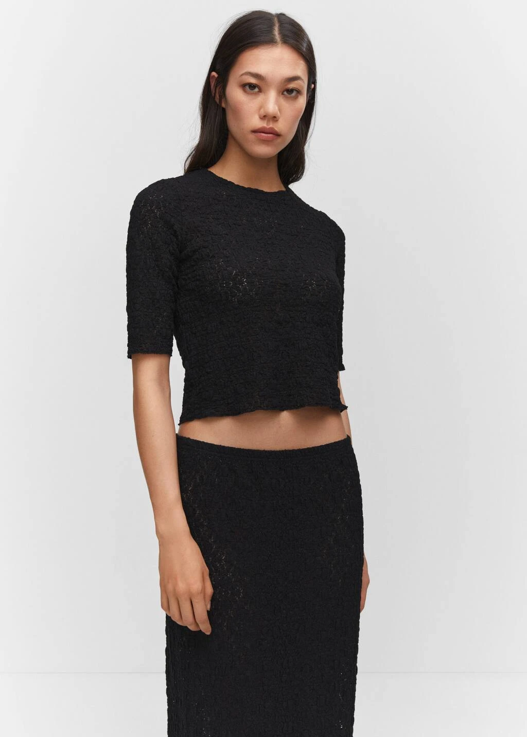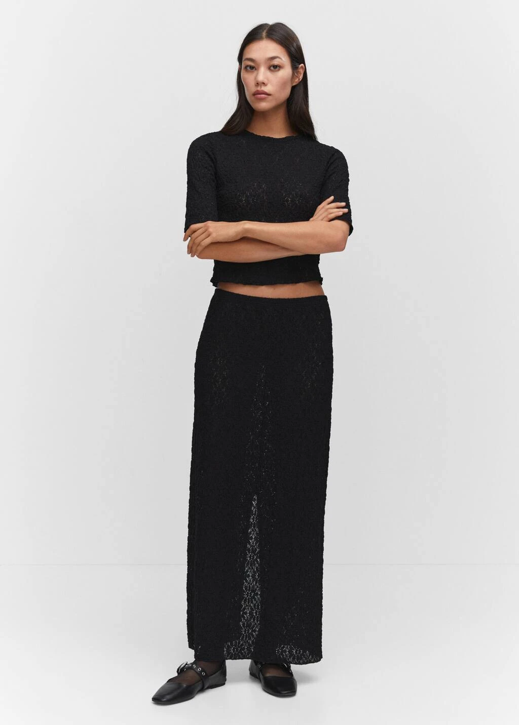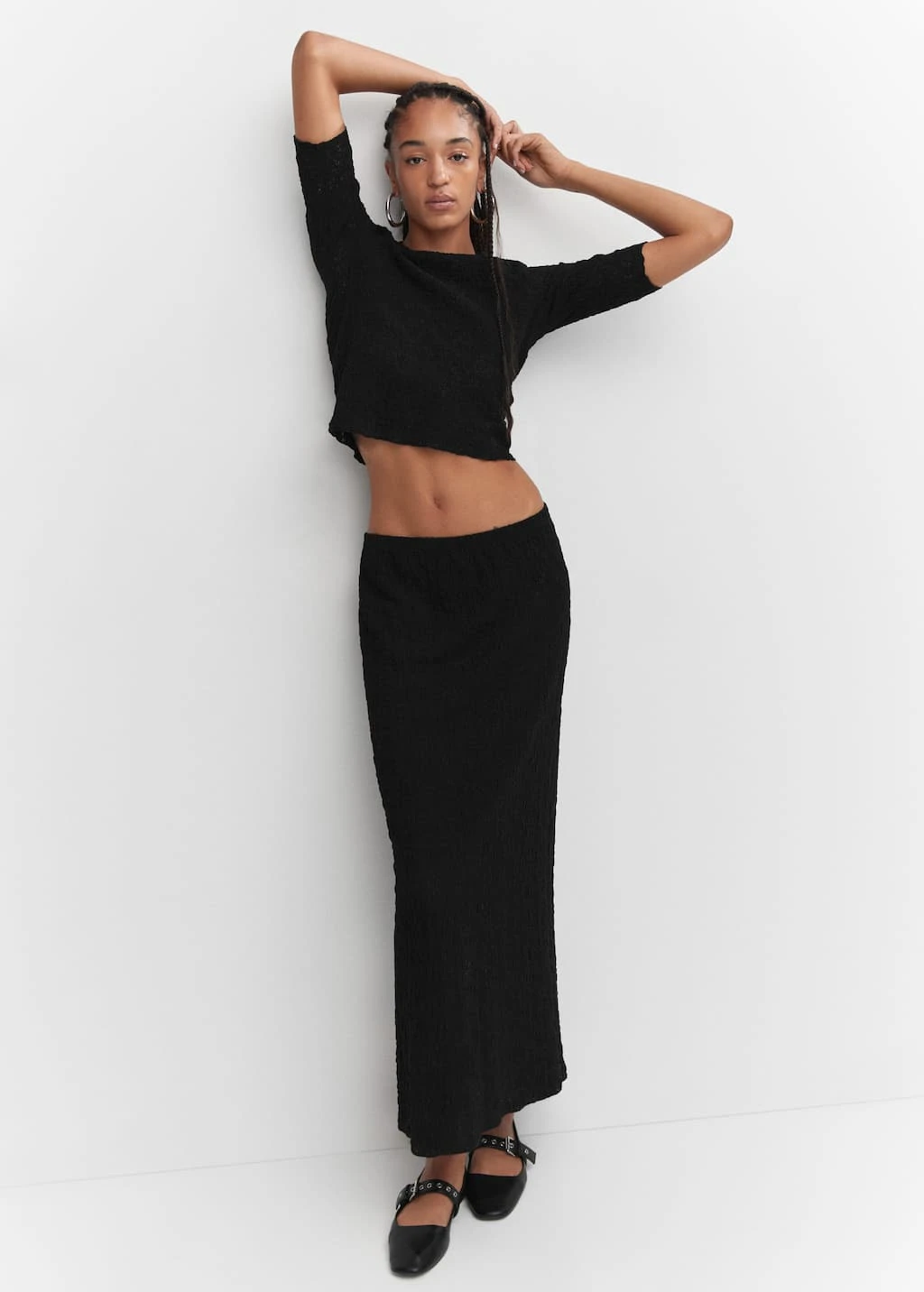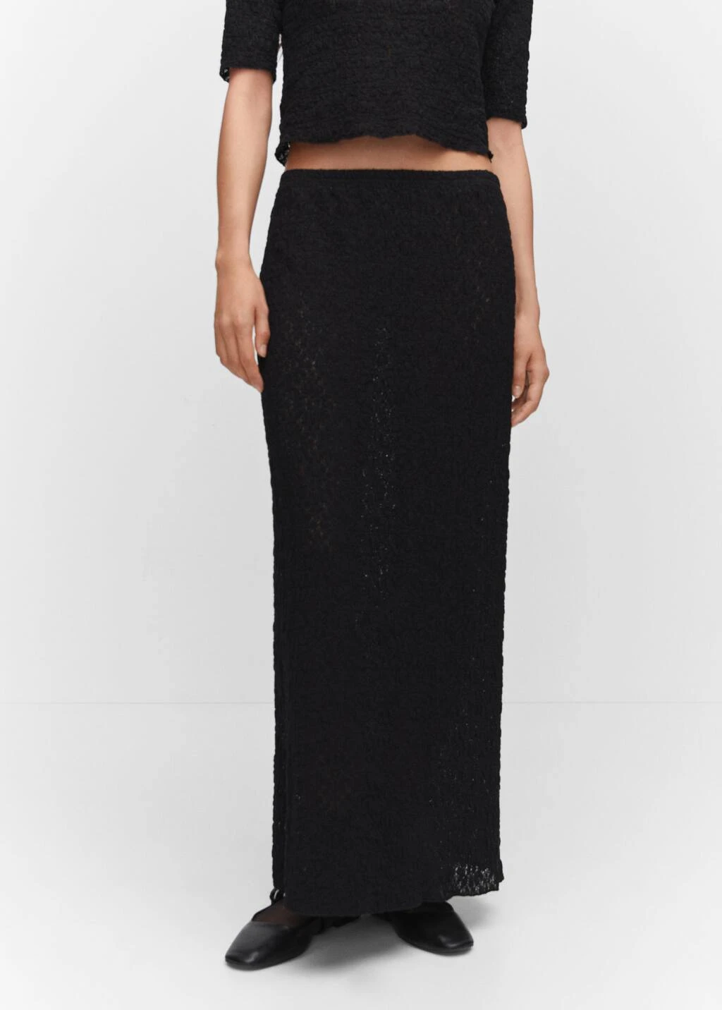tissu de coton melange, tissu texture, ajuste, coupe longue, taille elastiquee, sans fermeture, total lookComposition: 51% coton,48% polyamide,1% elasthanne