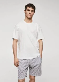 pack t-shirt et pantalon de pyjama, tissu 100 % coton, vendu avec un sac de rangement, t-shirt a manches courtes, col rond, short 100 % coton, taille elastique avec cordon de serrage, deux poches laterales, le mannequin mesure 187 cm et porte une taille m, avec ce vetement en coton, vous soutenez notre investissement dans la mission de better cotton. ce tissu est un equilibre de masse qui remplace ou melange du coton better cotton avec du coton conventionnel, aussi il est possible quâil ne contienne pas de better cotton. les agriculteurs partenaires beneficient d’un soutien et d’une formation continus.COMPOSITION:100% COTON