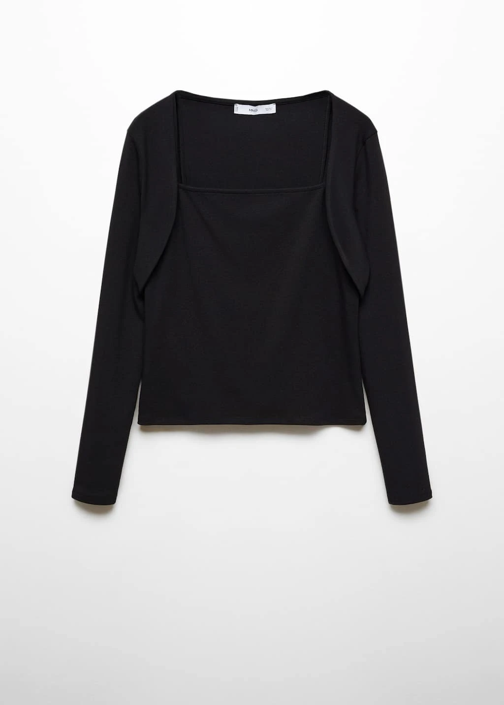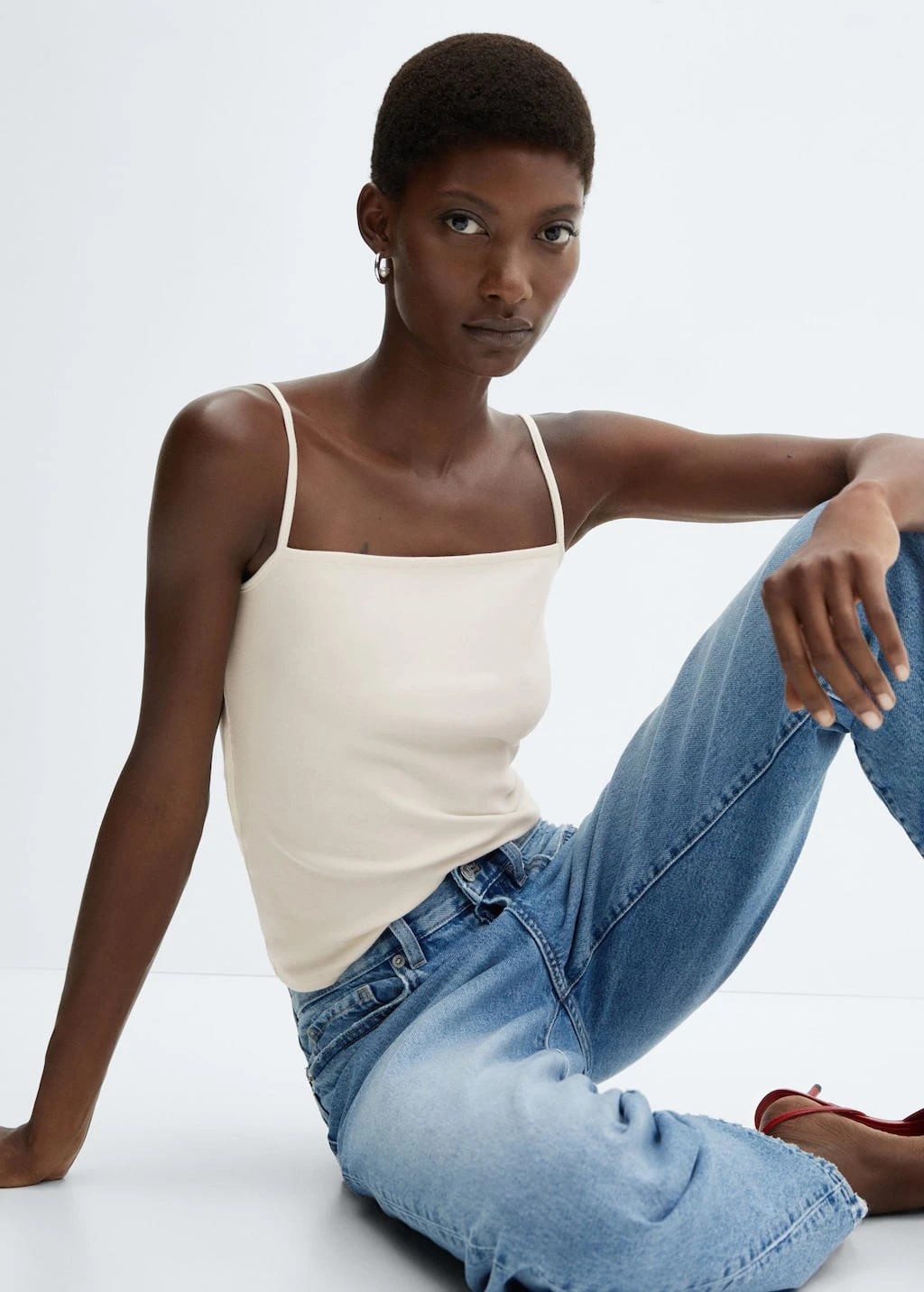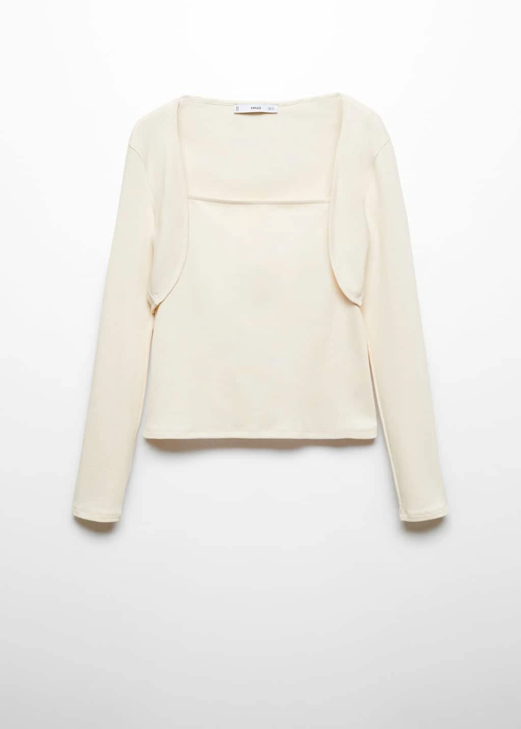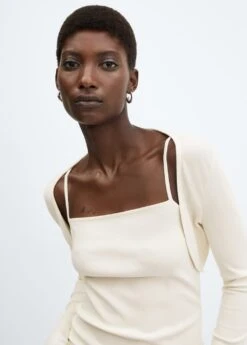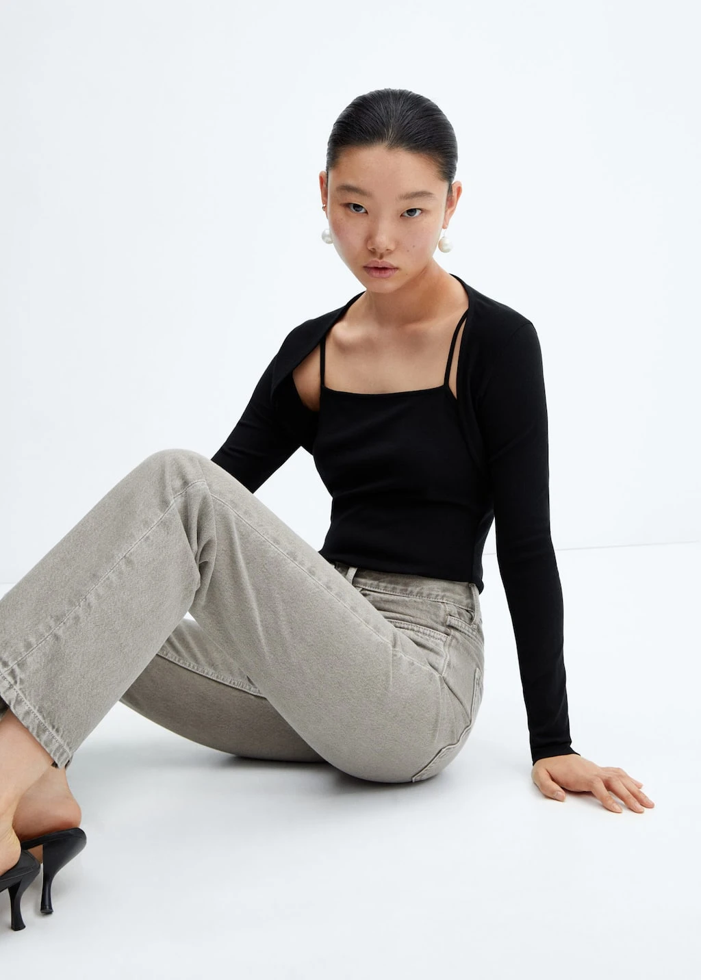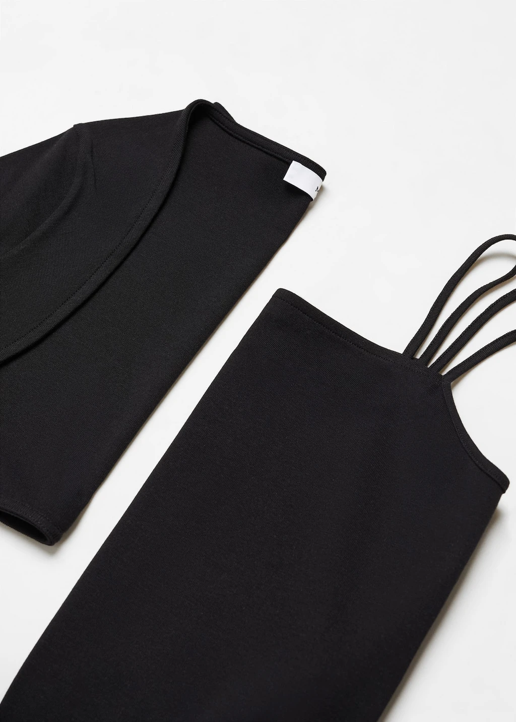 tissu en maille fine, tissu en coton organique recycle melange, ensemble, coupe droite, coupe courte, col carre, bretelles, manches longuesComposition: 46% modal,46% coton,8% elasthanne