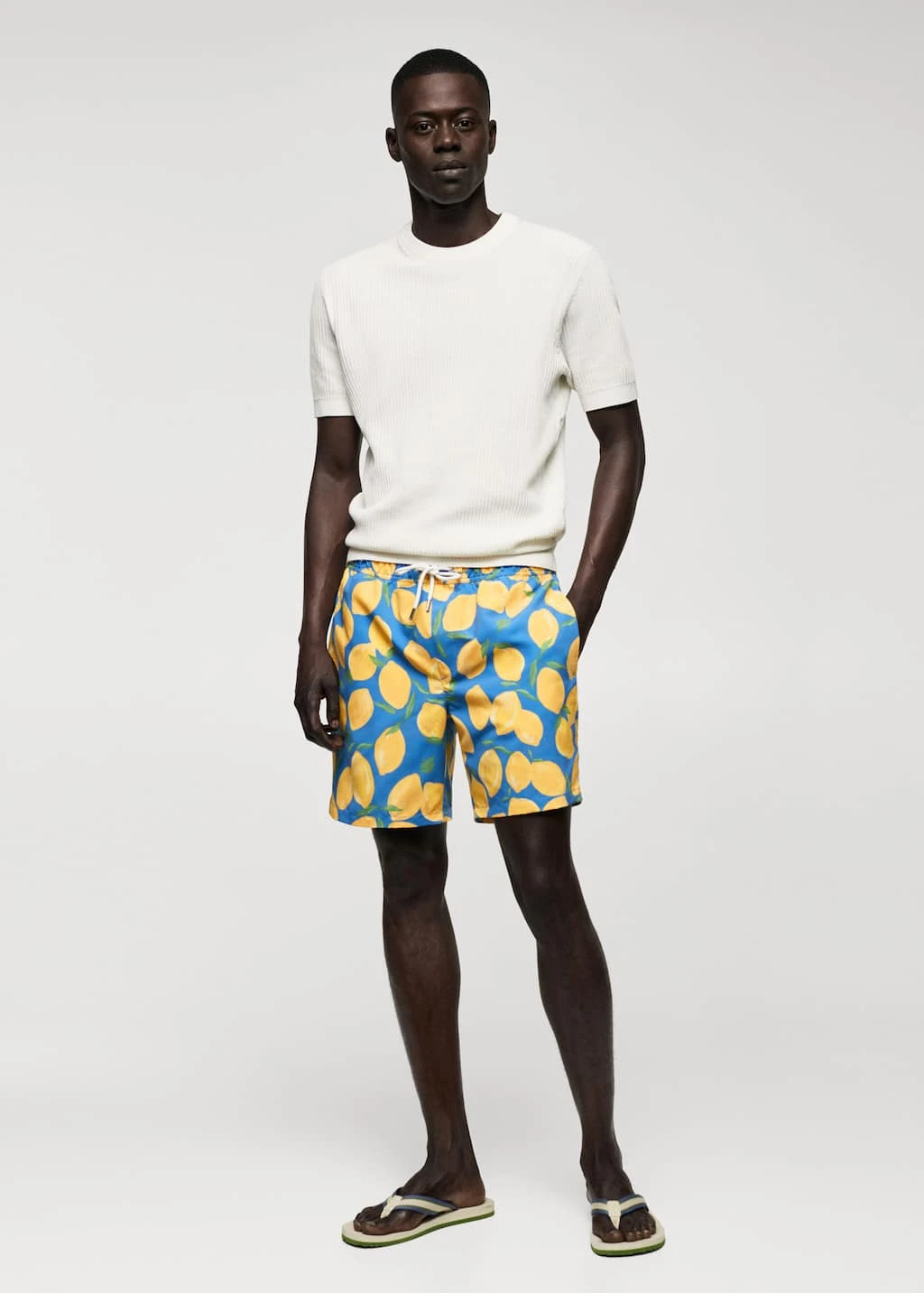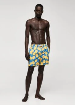 imprime de citrons, taille elastique avec cordon de serrage, deux poches laterales, poche plaquee a l’arriere, doublure, le mannequin mesure 190 cm et porte une taille mComposition: 100% polyester recyclĂ©. Doublure: 100% polyester