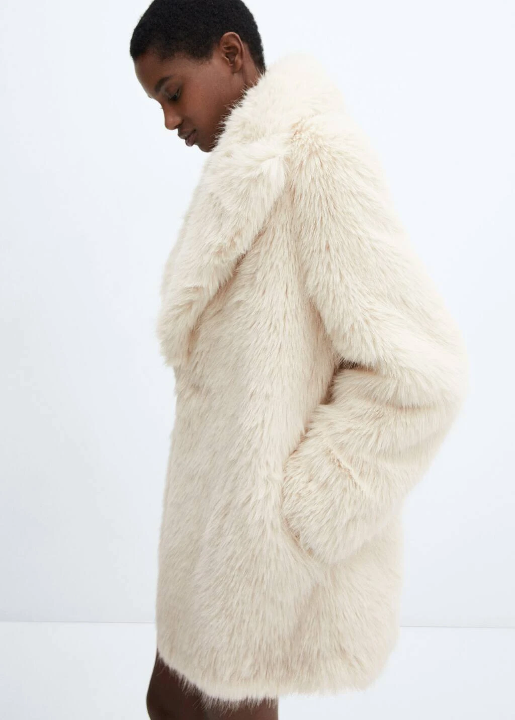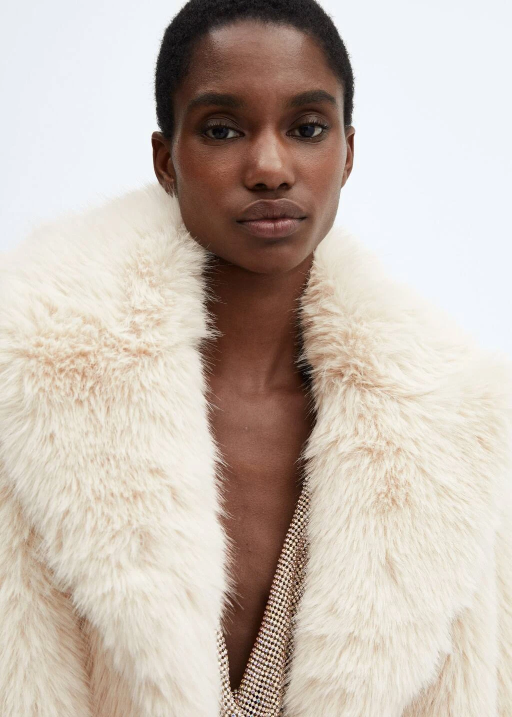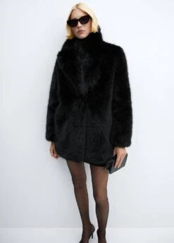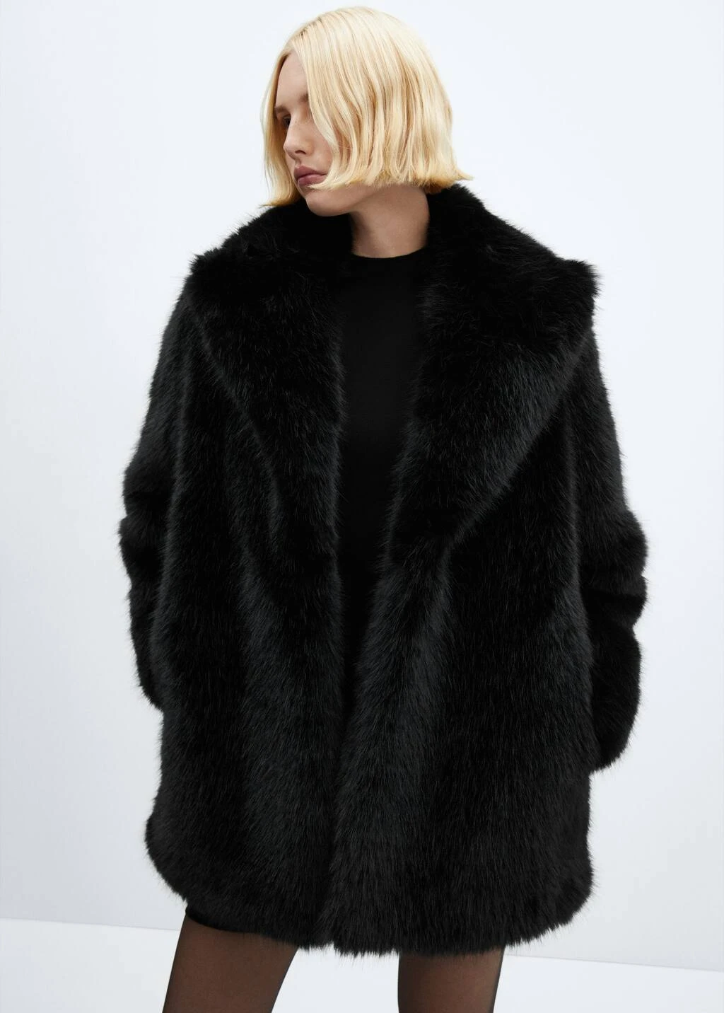 structure lourde, effet fourrure, style oversize, coupe midi, col en v avec rabat, manches longues, fermeture a l’avant a boutons-pression, doublure, collection fetes et ceremonies.Composition: 100% polyester. Doublure: 55% polyester,45% viscose