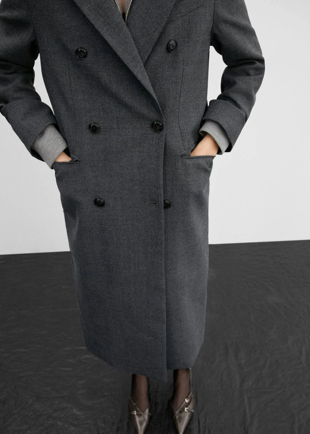 collection selection, tissu en laine, droit, coupe longue, col a revers, manches longues, poche passepoilee sur la poitrine, deux poches a rabat sur les cotes, bas fendu a l’arriere, doublure, fermeture a double boutonnage, une selection de pieces qui vous accompagneront lors du retour au bureau. confectionnee avec des matieres de qualite pour creer une garde-robe feminine et contemporaine pour votre quotidien.