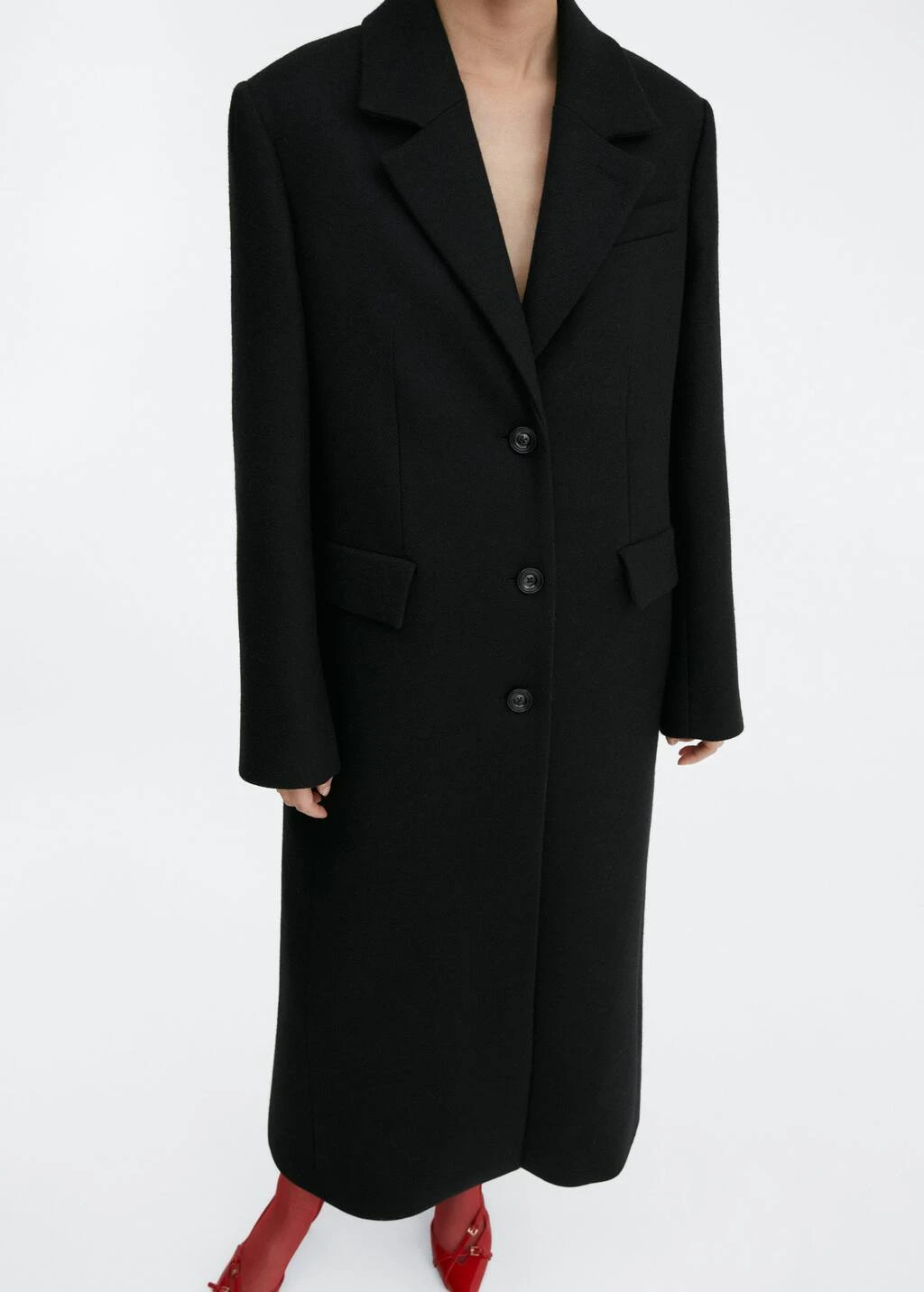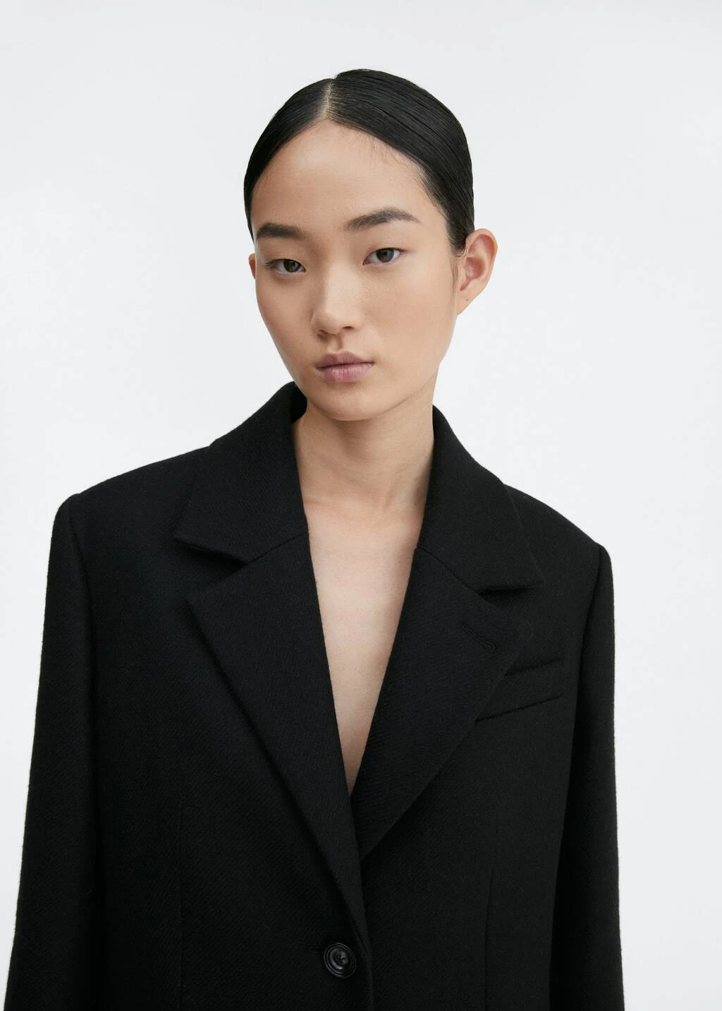 tissu de laine melange, coupe droite, structure lourde, coupe longue, col en v avec rabat, revers crantes, manches longues avec poignets boutonnes, fermeture boutonnee sur le devant, deux poches a rabat a l’avant, bas fendu a l’arriere, doublure, collection selection, une selection de pieces qui vous accompagneront lors du retour au bureau. confectionnee avec des matieres de qualite pour creer une garde-robe feminine et contemporaine pour votre quotidien.
