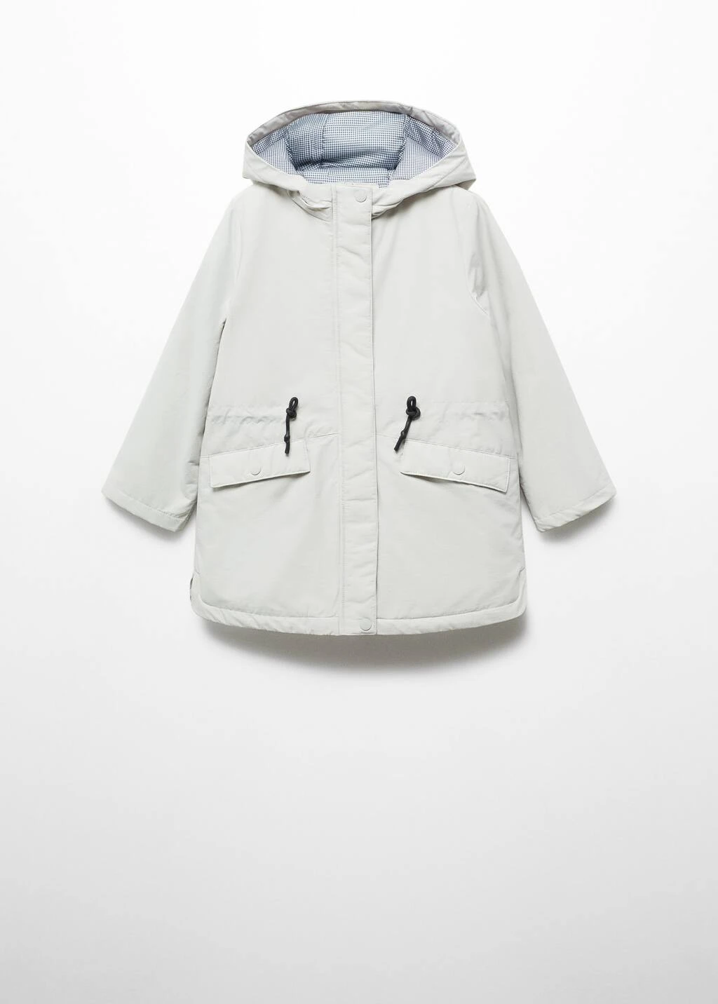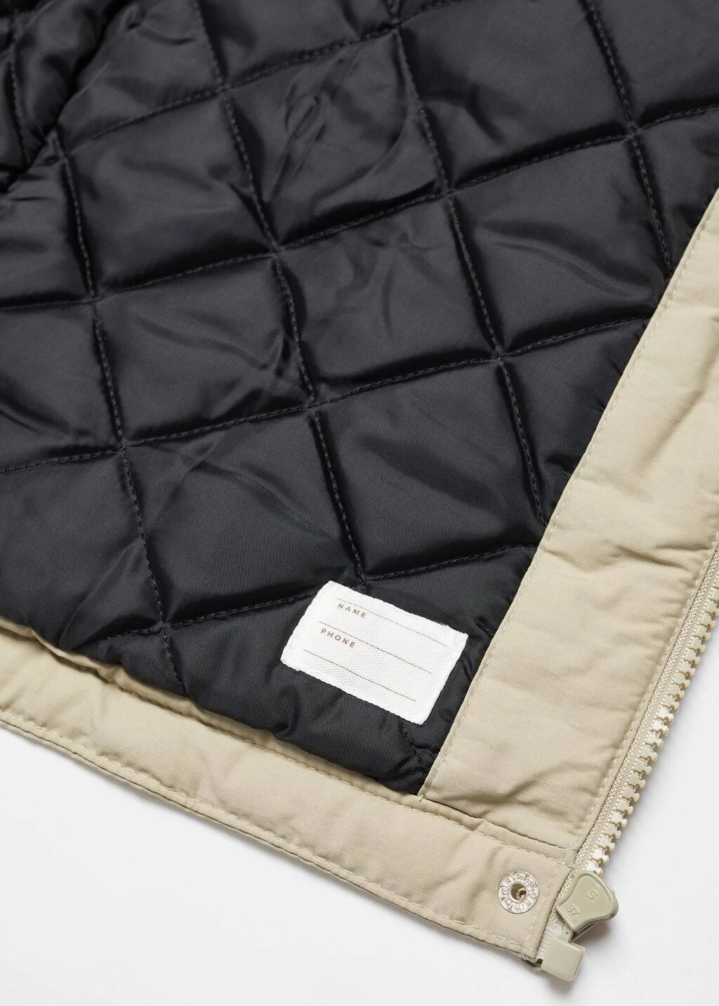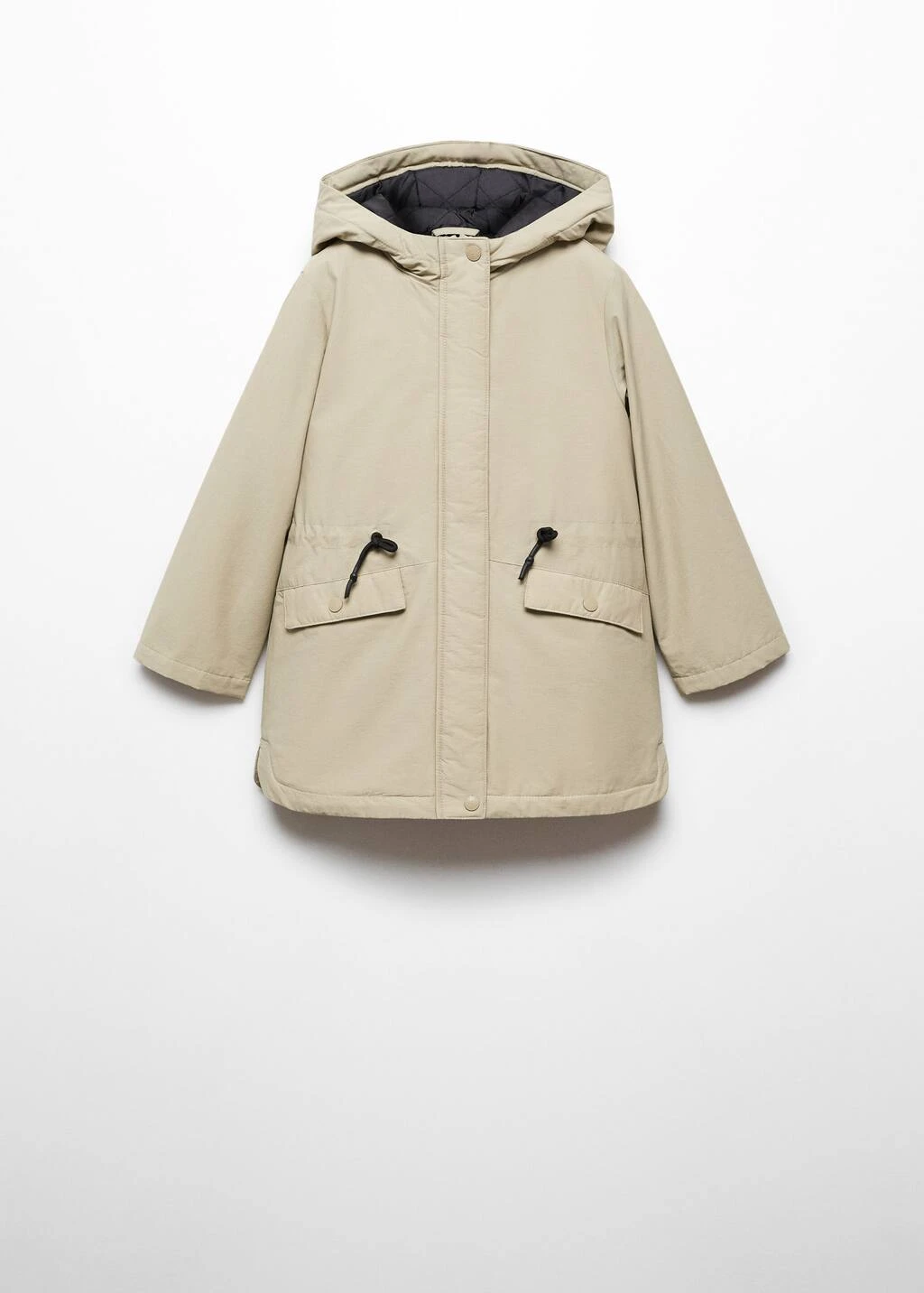 tissu en coton, interieur imprime, design impermeable, matelasse, coupe droite, manches longues, capuche, fermeture frontale, fermeture a cordonComposition: 60% coton,40% polyamide. Doublure: 100% polyester. Doublure manches: 100% polyester. Rembourrage: 100% polyester. Doublure capuche: 100% polyester